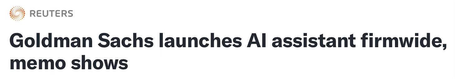 JPMorgan and BofA have also announced similar releases. You can search any company and add AI to the search and you will likely see a story about how that company is starting to use AI.