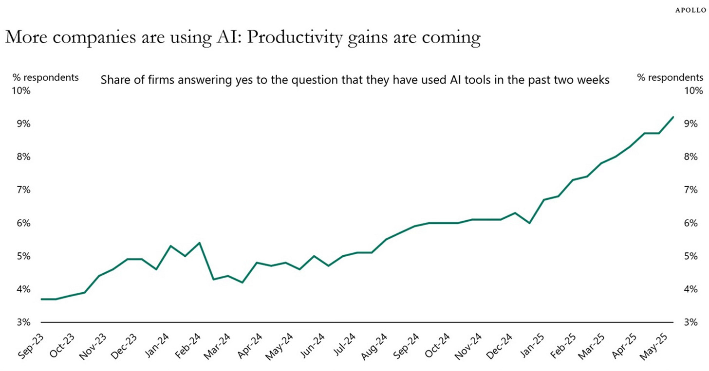 This is a great chart from Torsten Slok at Apollo on how the AI productivity gains are coming.