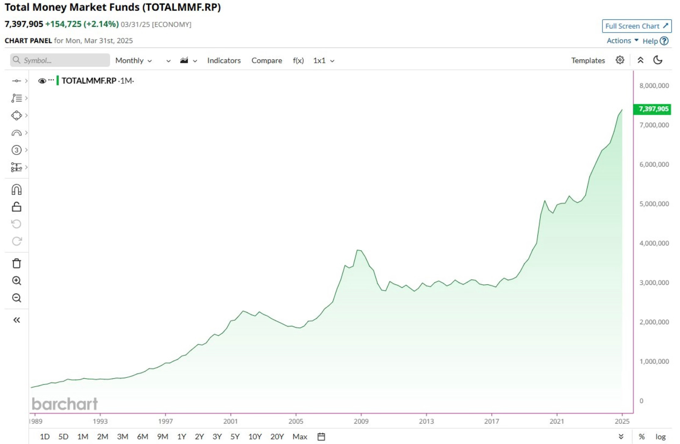 We hear a lot about the large amount of money that’s sitting in Money Market Funds. In fact, $7.4 Trillion is now sitting in Money Market Funds. That’s another new all-time high