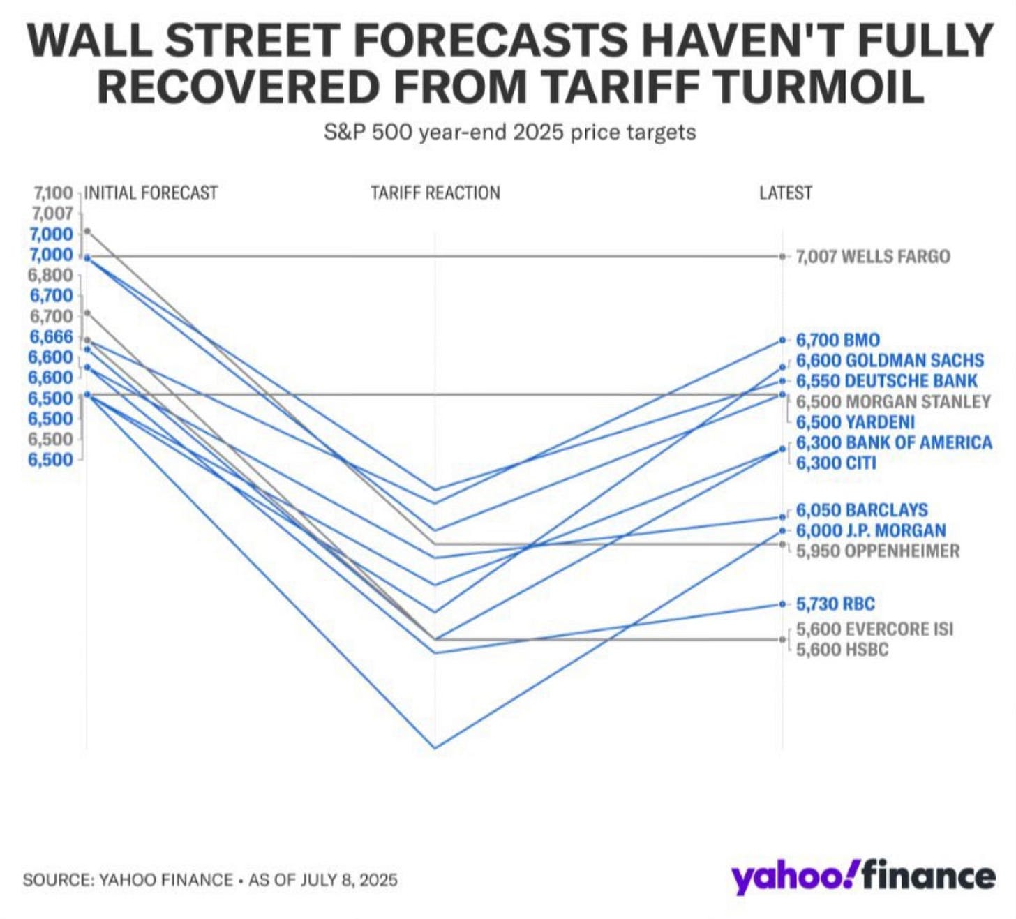 I’ve talked about how Wall Street forecasts just seem to follow what the market does. They make changes numerous times throughout the year. This visual shows exactly my point. All most do is chase and react to what the market is doing. It isn’t really a forecast and to me these just make for good TV discussions.