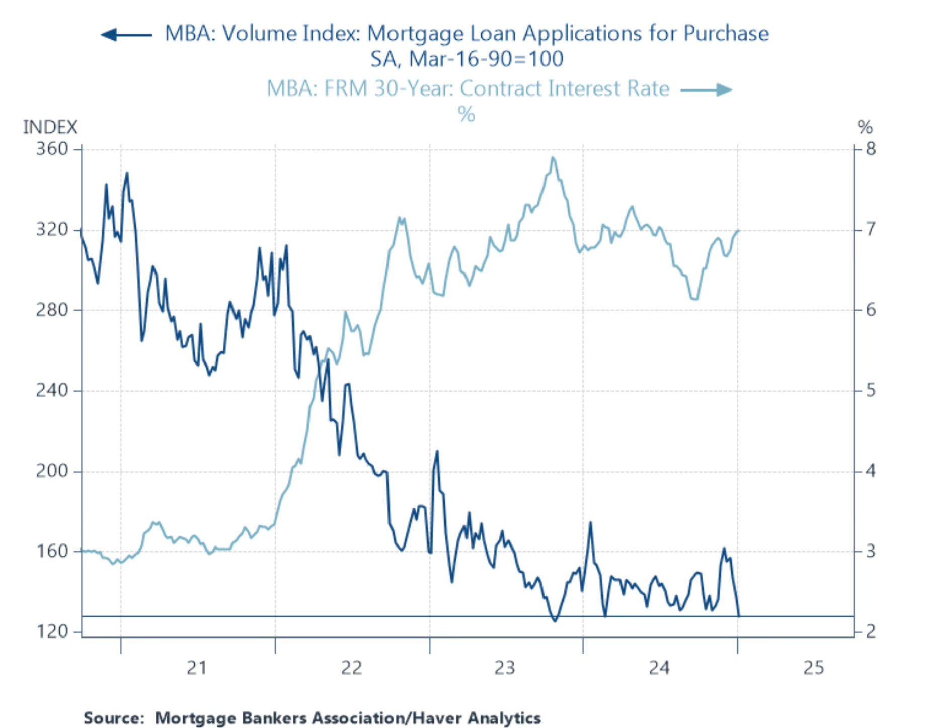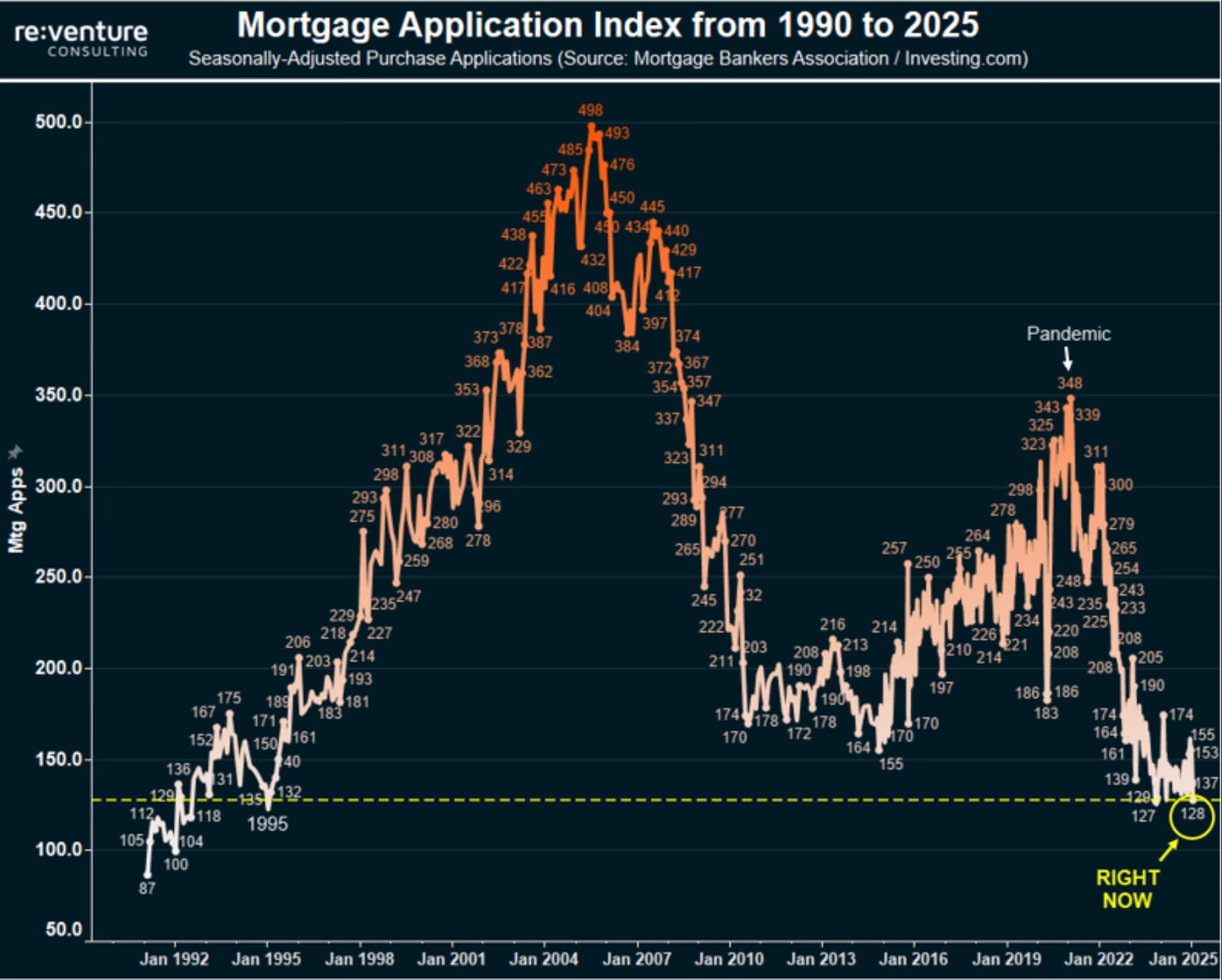 The mortgage demand index has now fallen to the lowest since February 2004. That’s the 3rd lowest level in the past 30 years.
