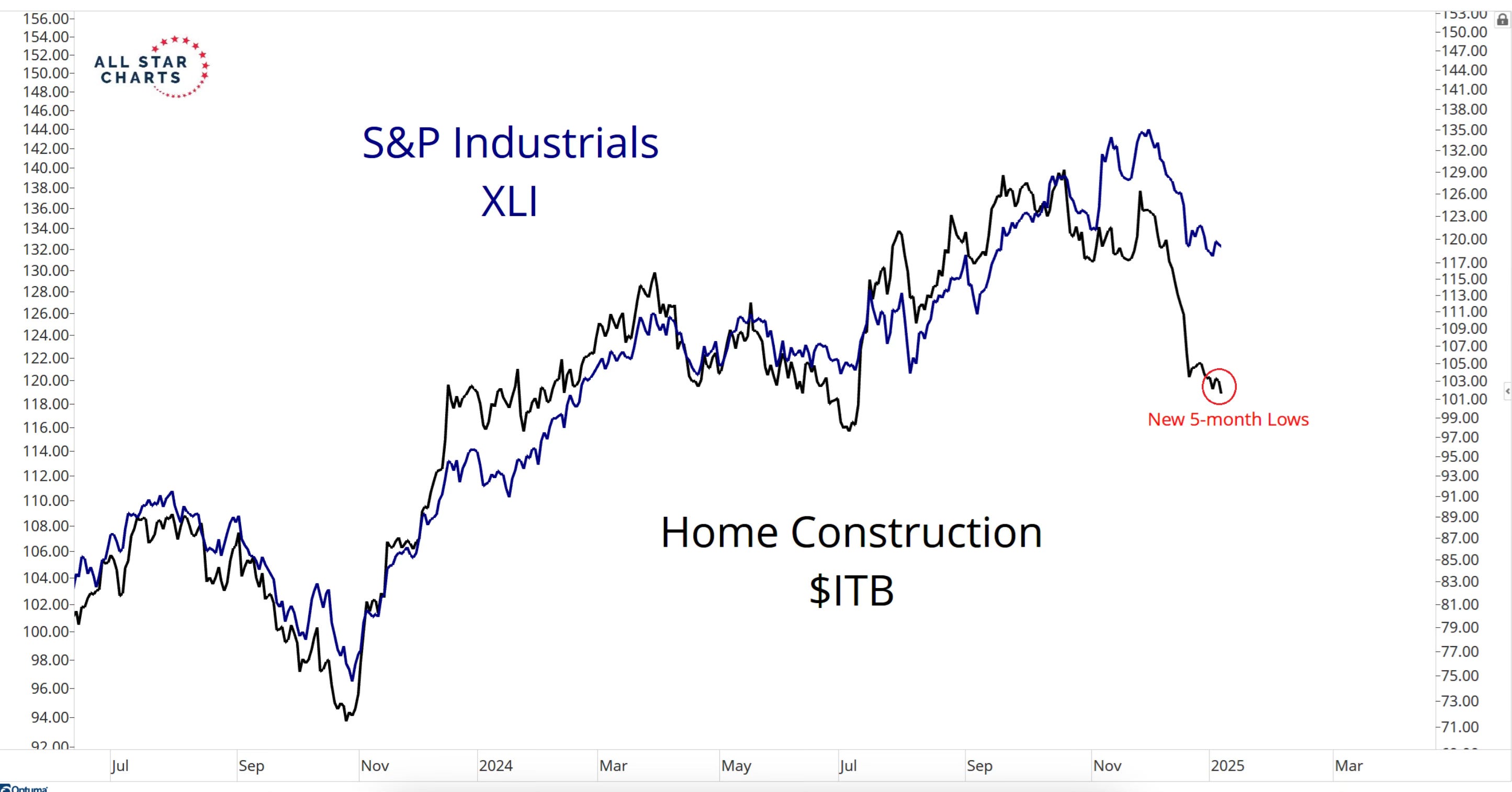 J.C. Parets does a great job showing just how closely industrials (XLI - Industrial Select Sector SPDR Fund) another very important industry and home construction have been so closely correlated.