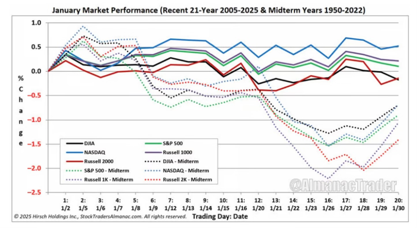 It’s also worth keeping in mind that January has historically started strong but tends to weaken as the month goes on. This has been especially true in midterm years like the one we’re in.