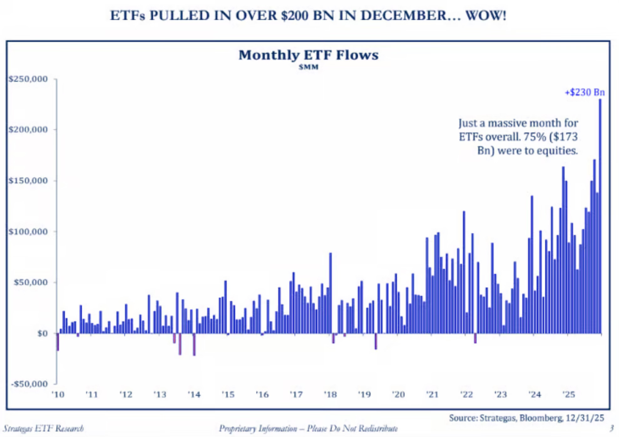 Take a look at ETF flows in December. It was a record month for inflows, with $173B of the $230B total going into equities. It’s hard to be bearish when you see numbers like that.
