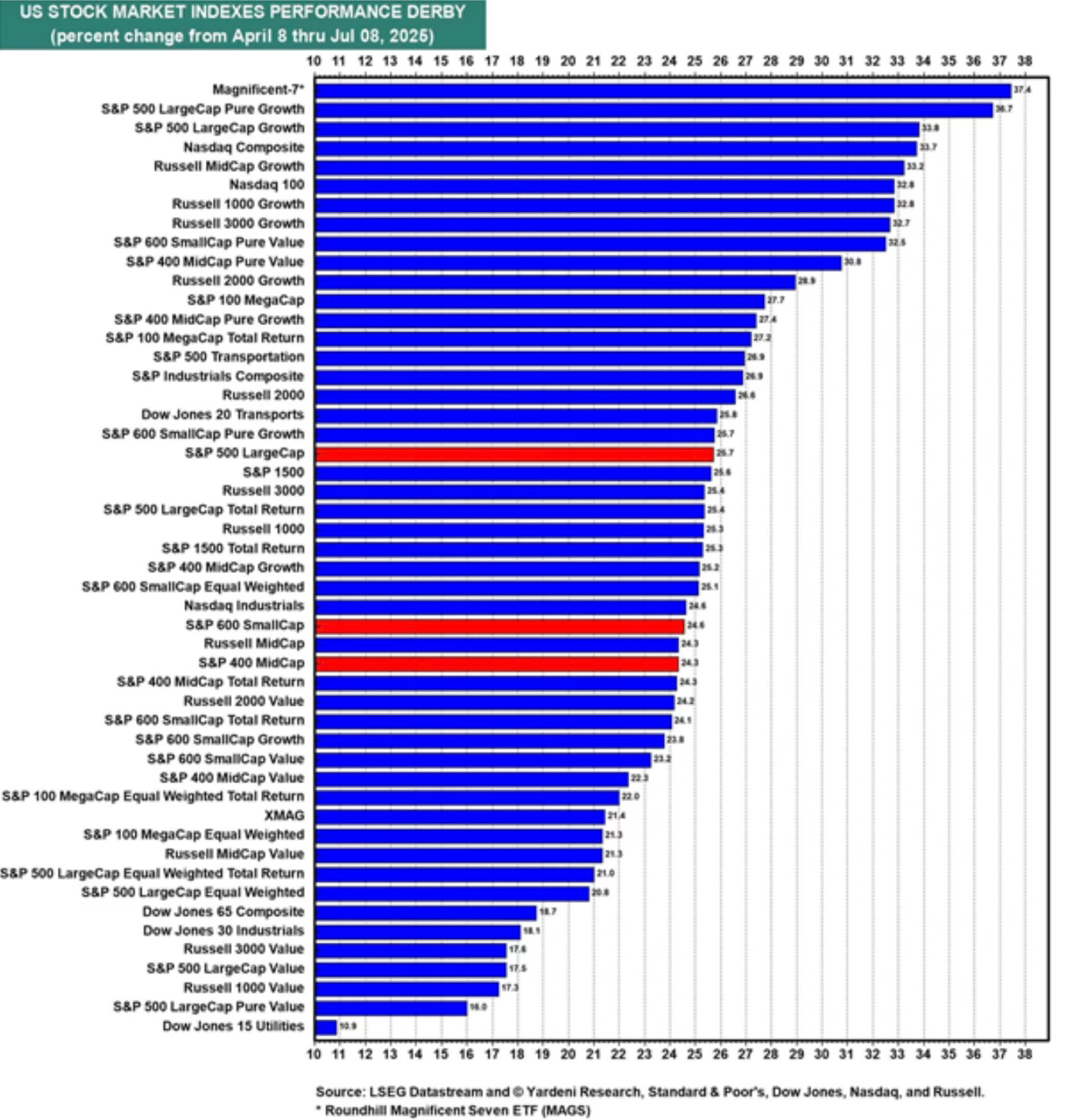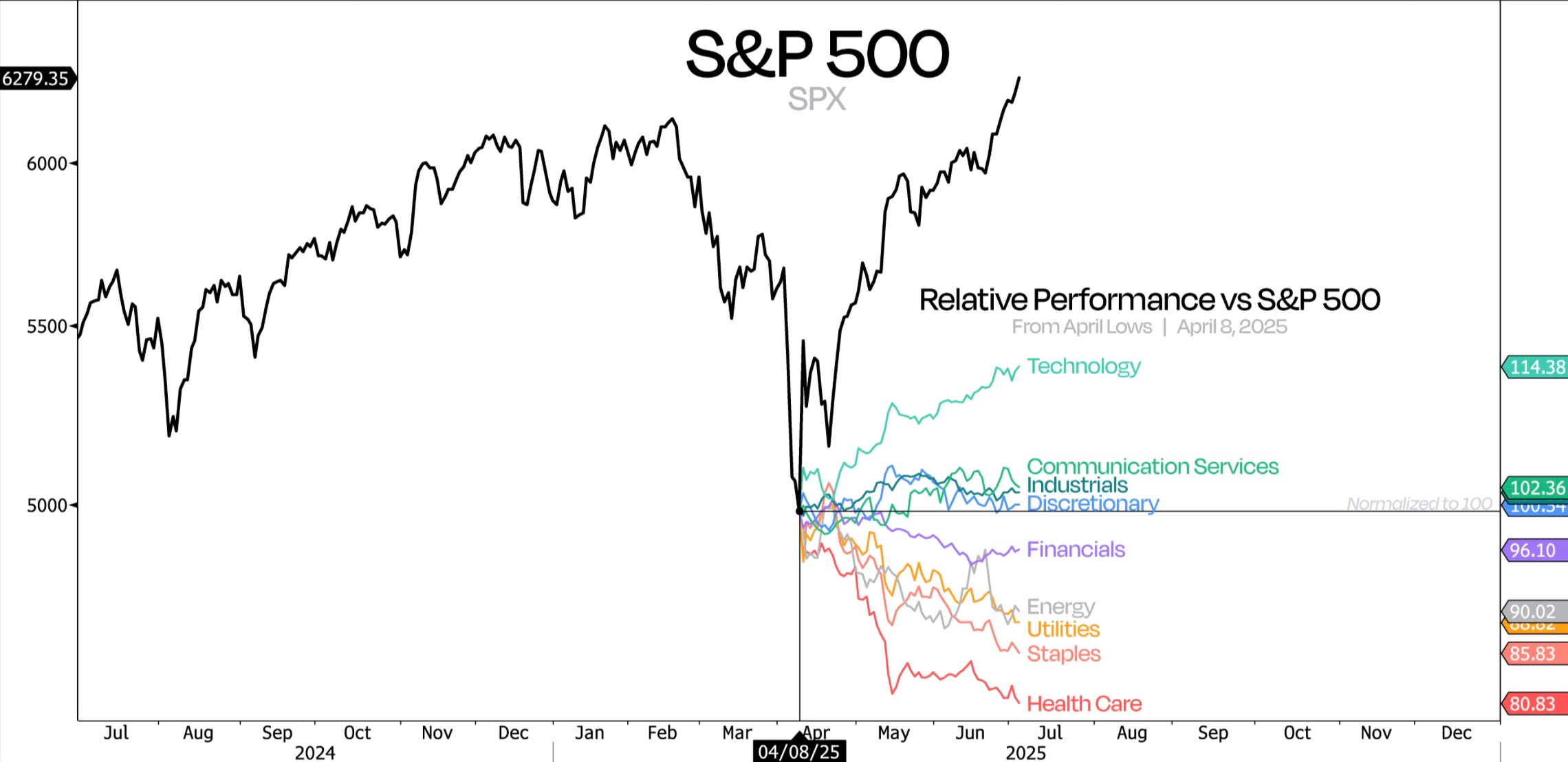 Pretty much everything is up from the April lows. Did you know that the leader from the lows has been the Magnificent 7? Imagine where the Mag 7 would be if Apple and Tesla could sustain a rally.