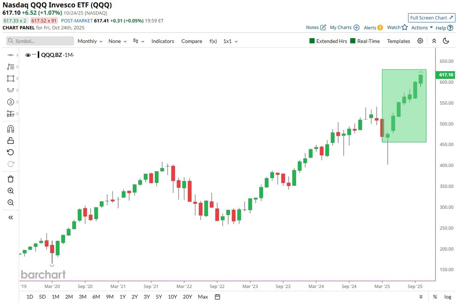 The Nasdaq is now on pace for its seventh straight positive month, its longest winning streak since 2016–2017.