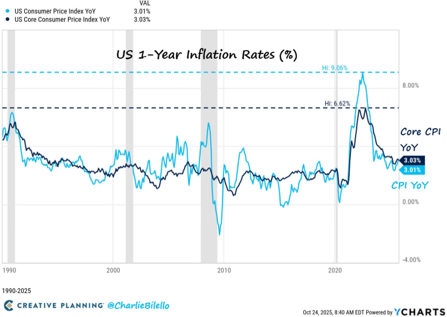 For September, U.S. CPI rose 3.0% year over year — the highest level in 16 months, but slightly below expectations for a 3.1% increase.