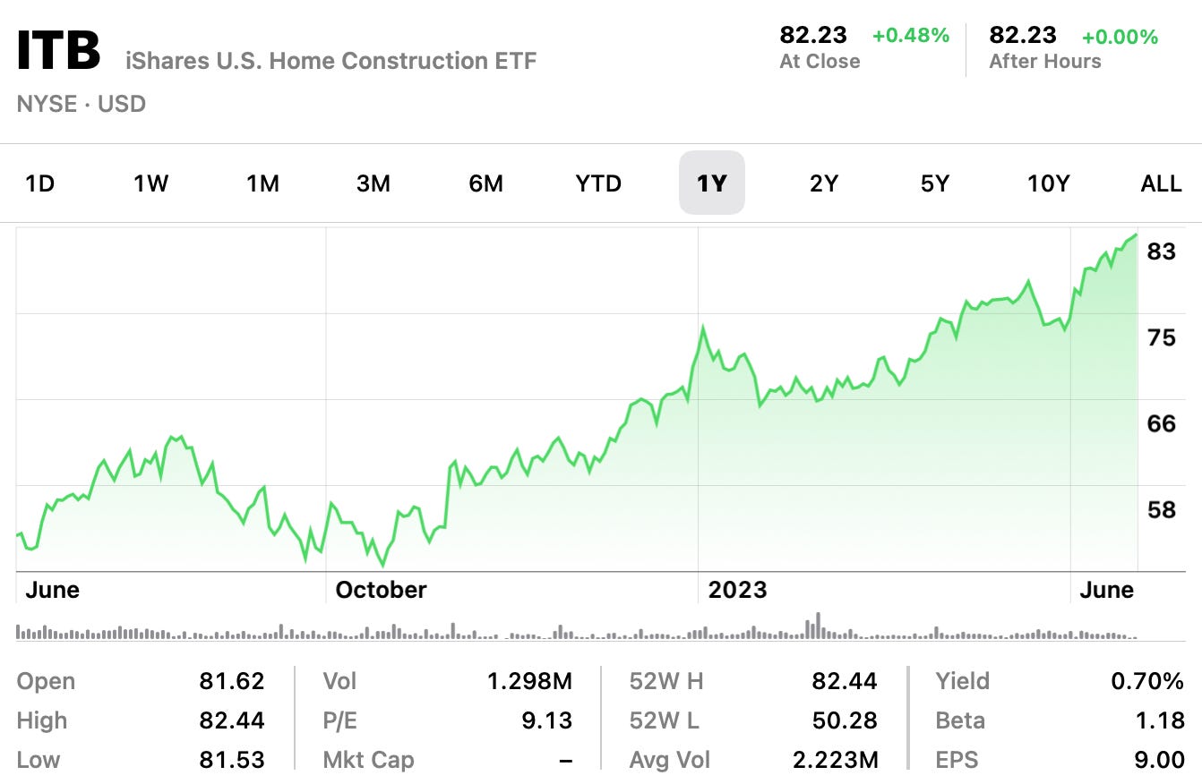 The big winner from this all continues to be the home builders. The iShares U.S. Home Construction ETF ITB 0.00%↑ just keeps going higher. YTD it’s up 34% and in a year up 54%.