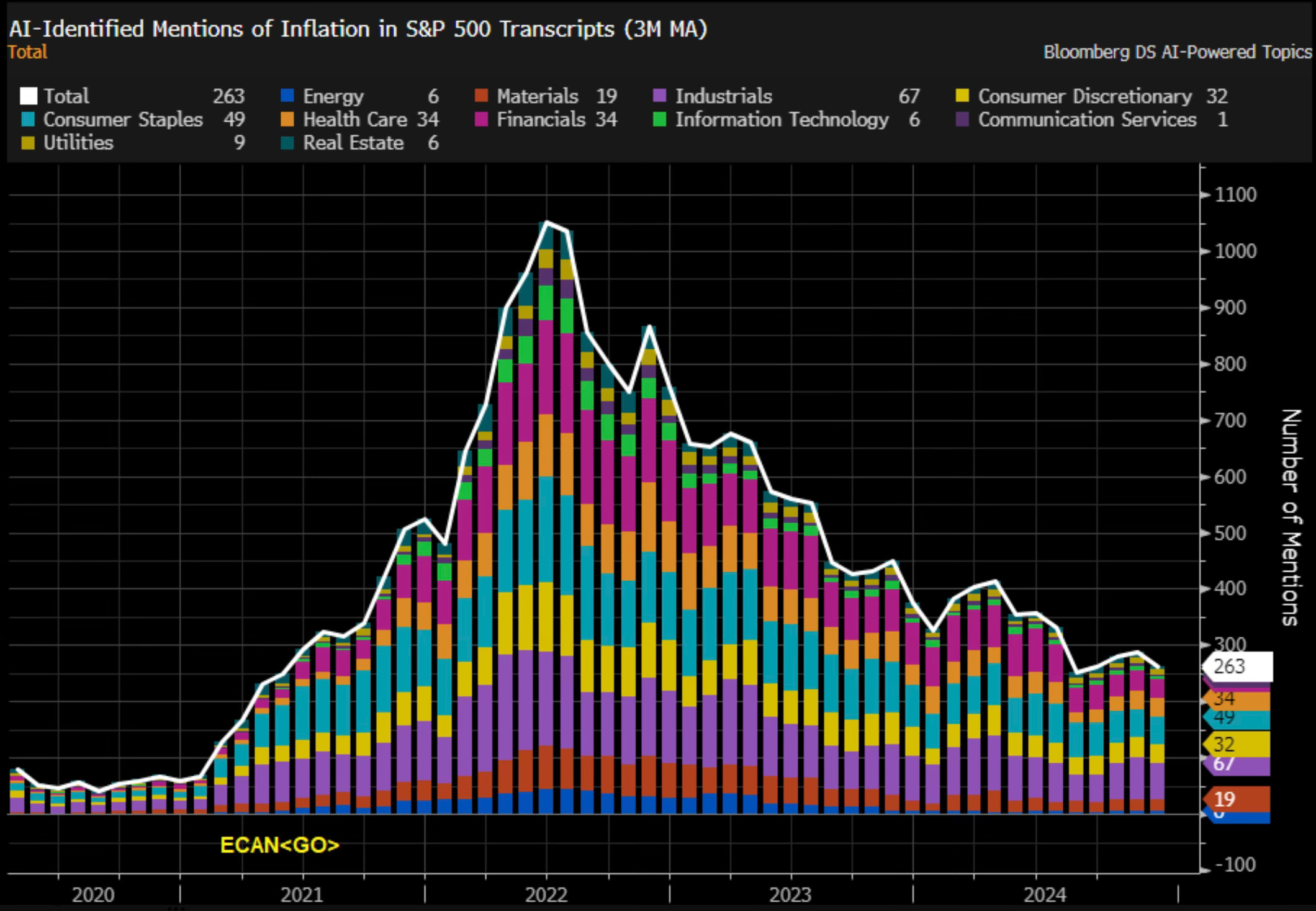 One area where the word inflation hasn’t been mentioned is on S&P 500 earnings calls. Until this starts to pickup again, I don’t envision inflation becoming a major problem. It may remain sticky at these current levels but I don’t see a scenario where it becomes anywhere near the issue that it was.