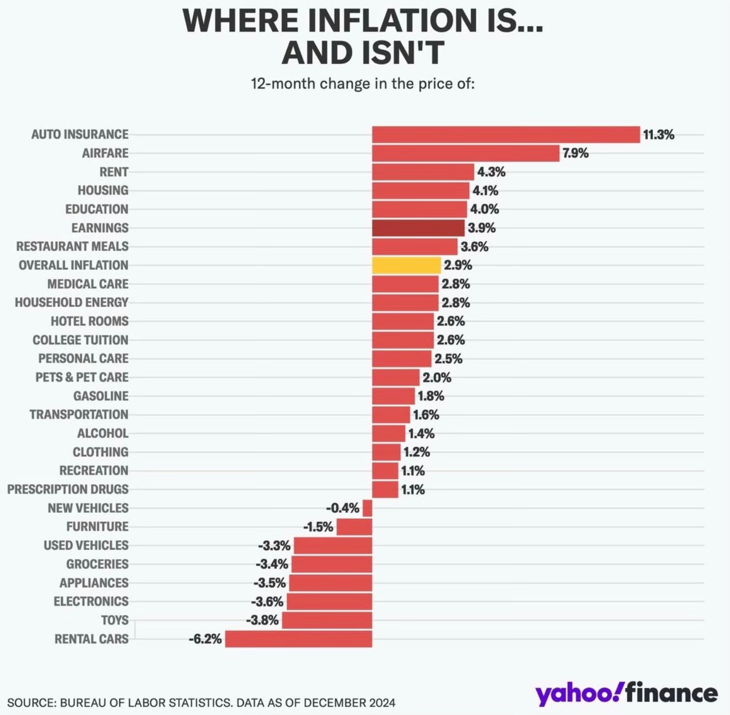 Here is where inflation is and isn’t. The overall percentages keep coming down each month. More and more areas are now showing up in the negative. A lot of positives on here.