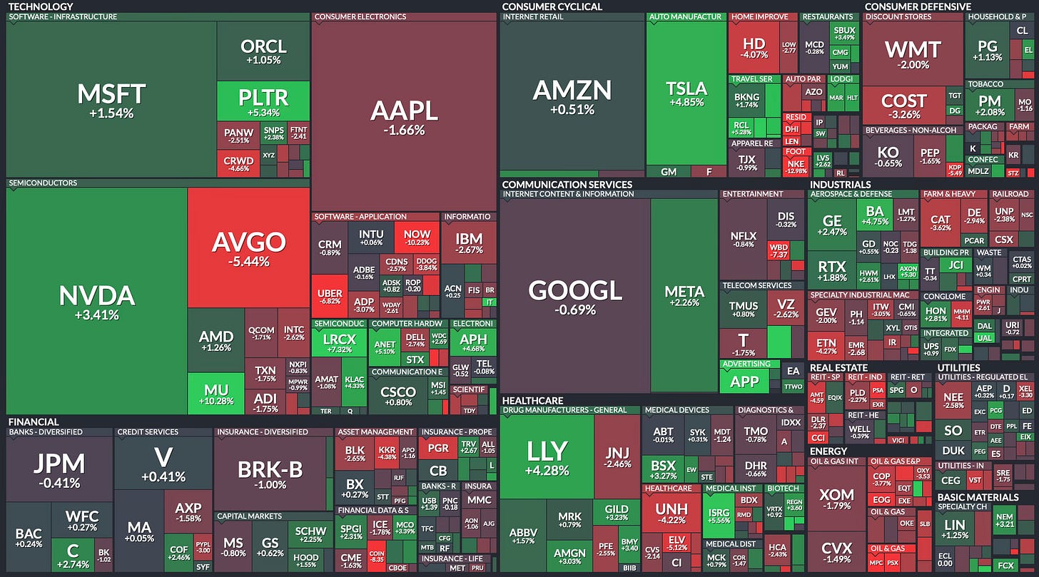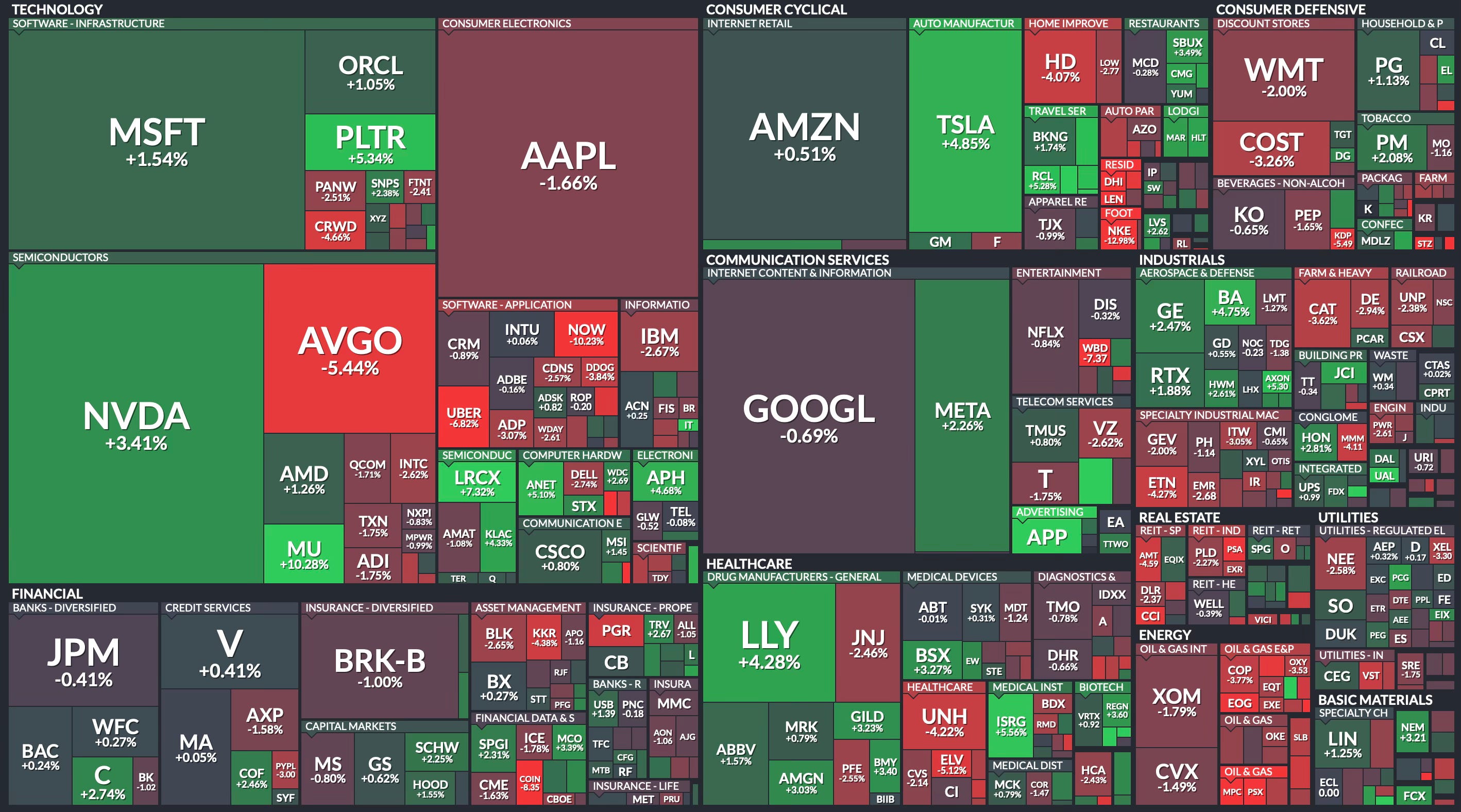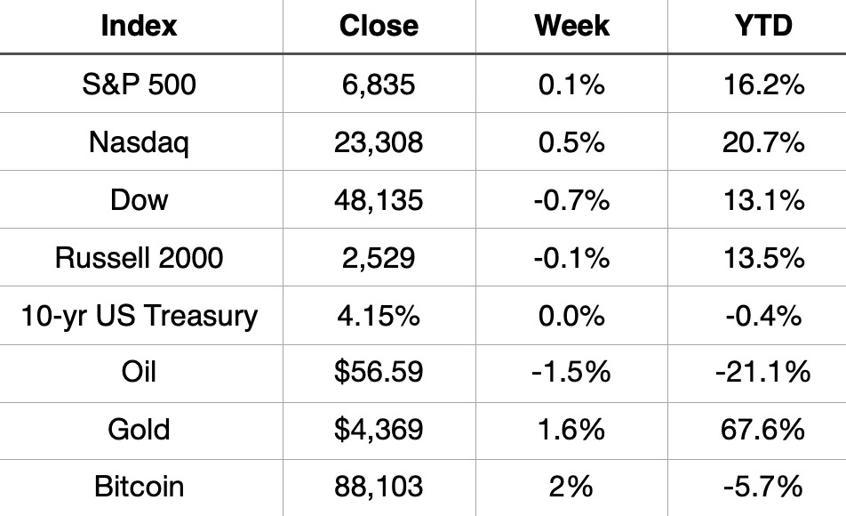 Stocks finished the week slightly higher after rebounding from early in the week weakness. Tech names, especially AI-linked leaders drove the late-week advance, helping erase earlier losses and push major indices back toward key levels.