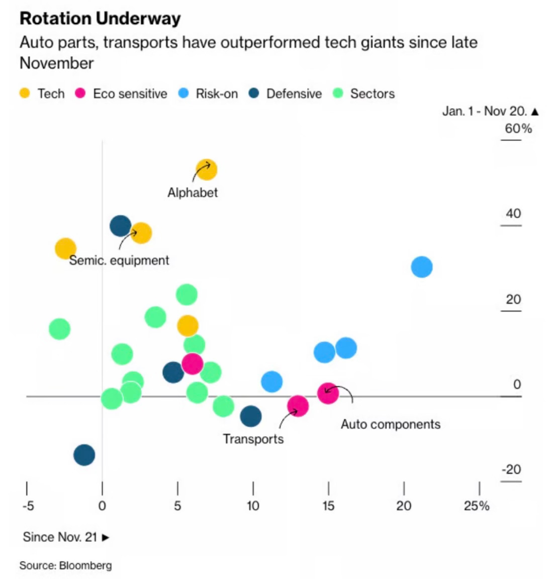 You can see in this chart what led the market from January 1st through November 20th. Since November 21st, leadership has shifted.