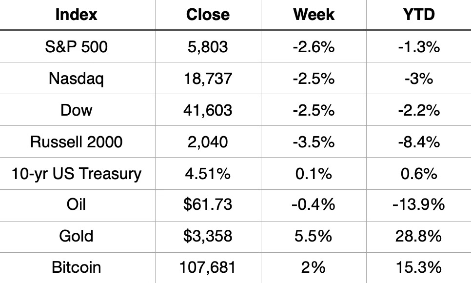 All the major indices were down 2.5% or more this week.