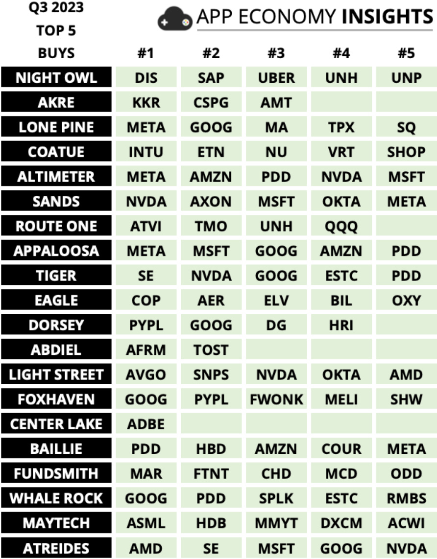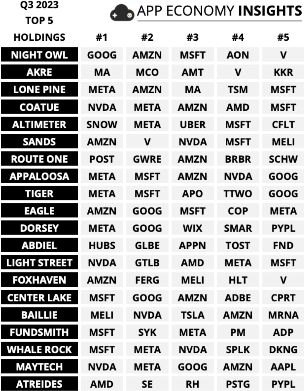 The top 5 holdings through Q3 reflect a very similar picture. What surprised me is that Apple and Tesla each only appeared once on this entire list. I find that quite interesting.