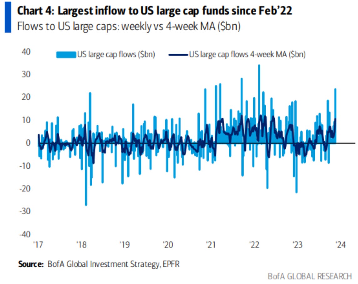 Now we see also see more money coming into US large cap funds. That’s the largest inflow into US large caps since February of 2022.