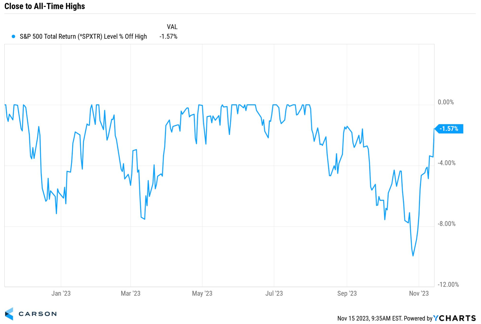 Speaking off all-time highs. Were you aware that the market now sits less than 2% from a new all-time high (total return)? That’s just how strong the last few weeks have been.