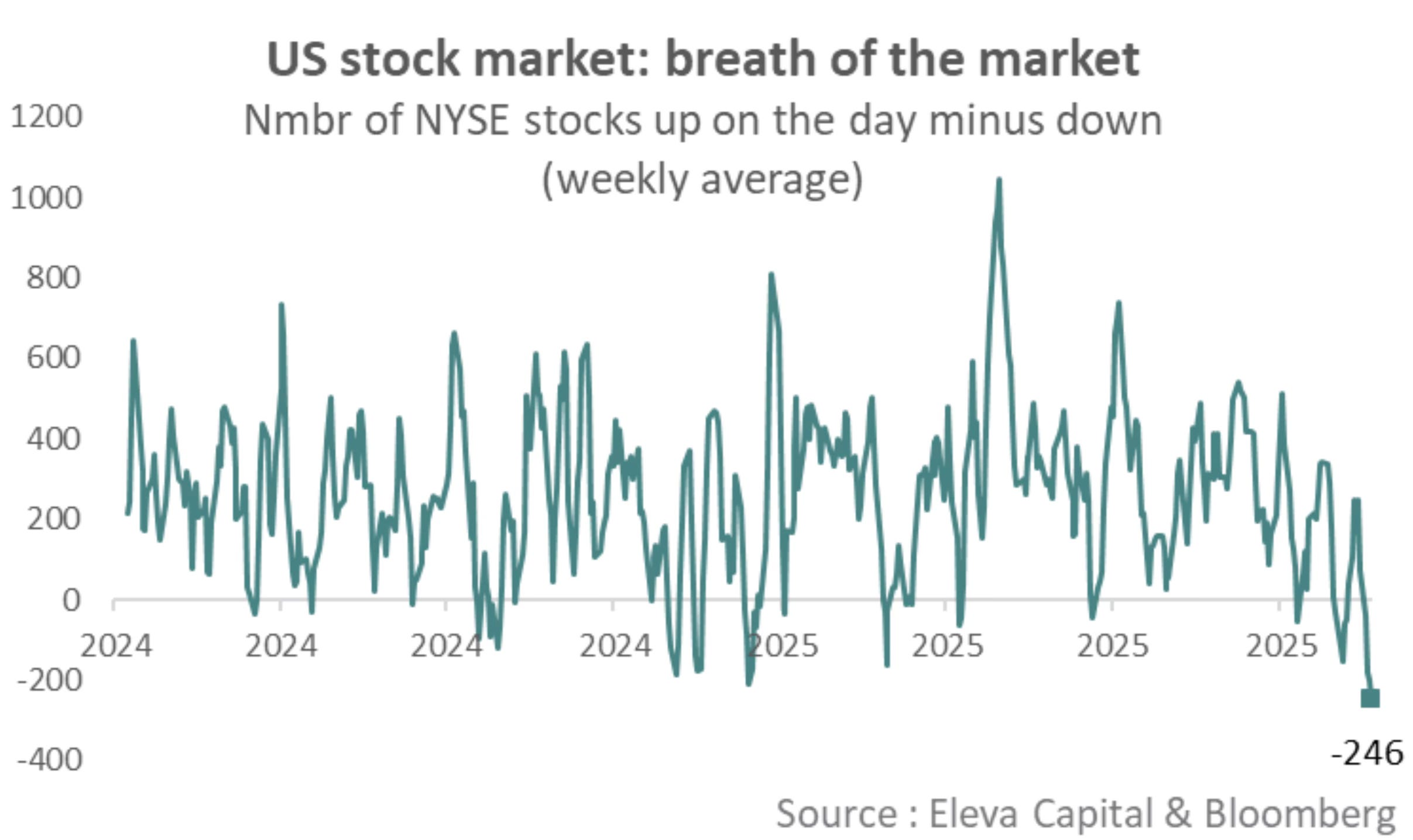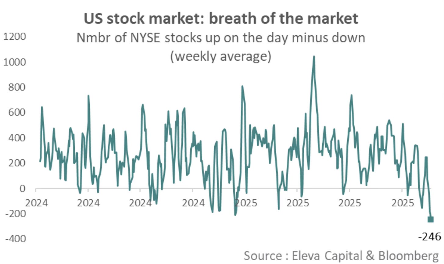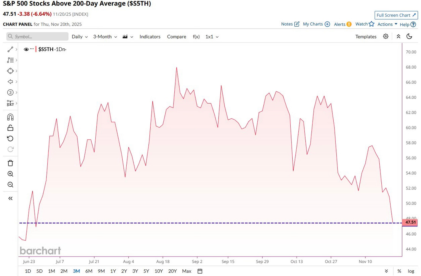 We are at a point where the technical data now shows that less that half of S&P 500 stocks are trading above their 200-day. That’s the worst reading since June.