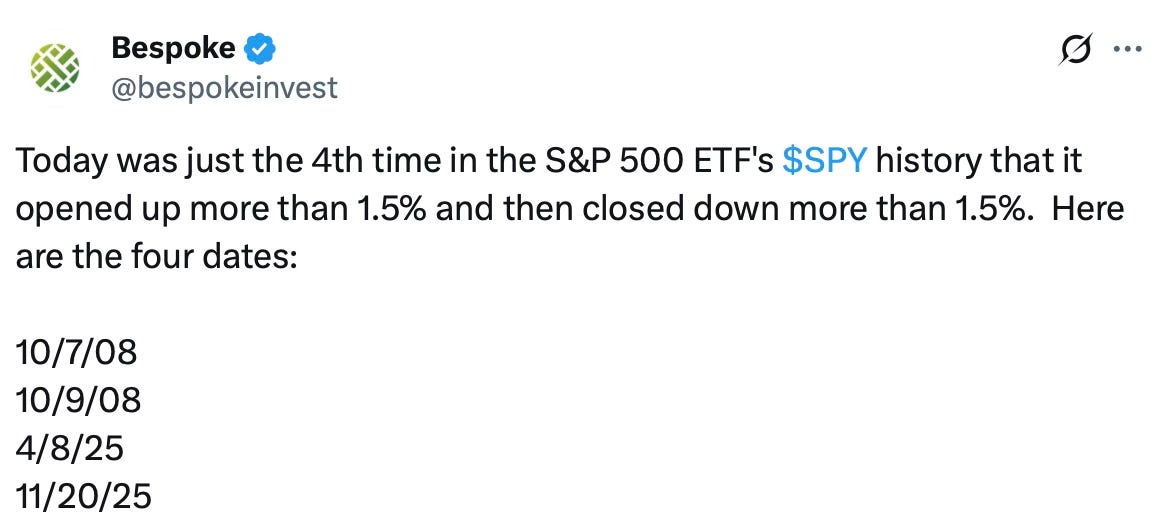 We also saw a bit of unwanted history on Thursday. It was only the 4th time ever that the S&P 500 experienced an intraday swing of that magnitude.