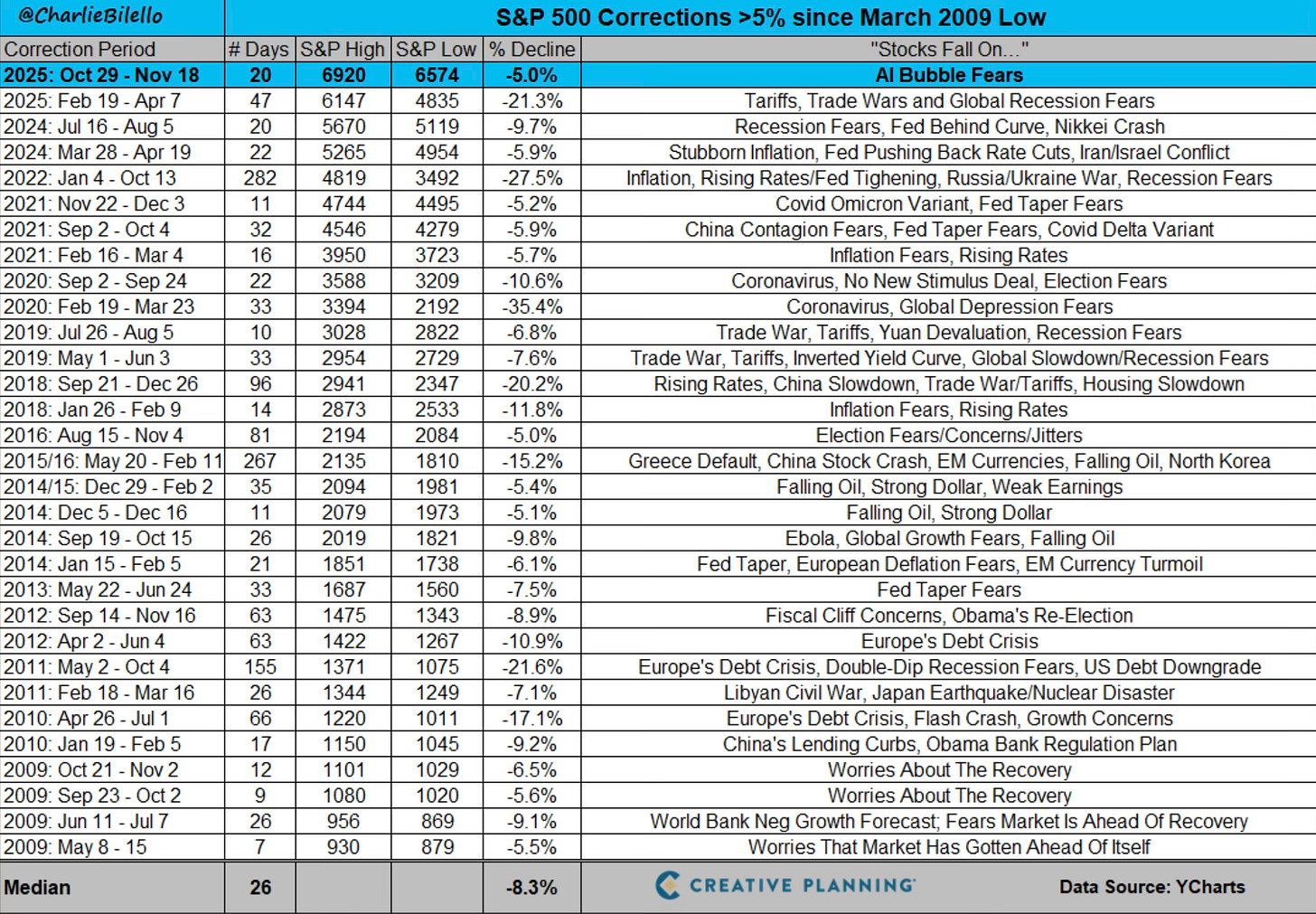 This week marked the second 5%+ correction of 2025. The S&P 500 is now down just over 4% from its peak on October 29th.