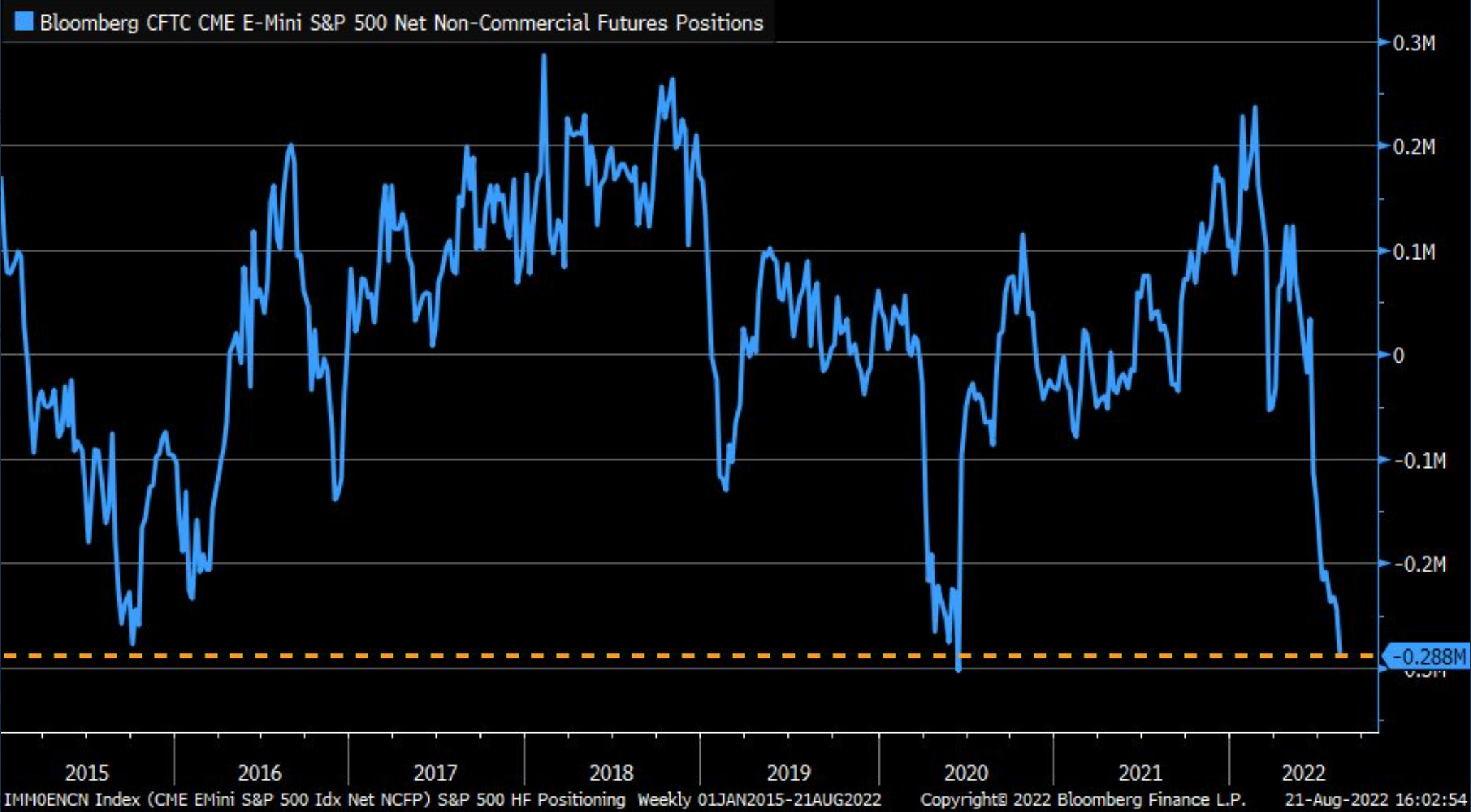 Investors and hedge funds have ramped up their short positions against the S&P 500 futures. This means traders (mostly hedge funds) have increased their bets that the S&P 500 will fall. We’re now at levels not seen in two years.