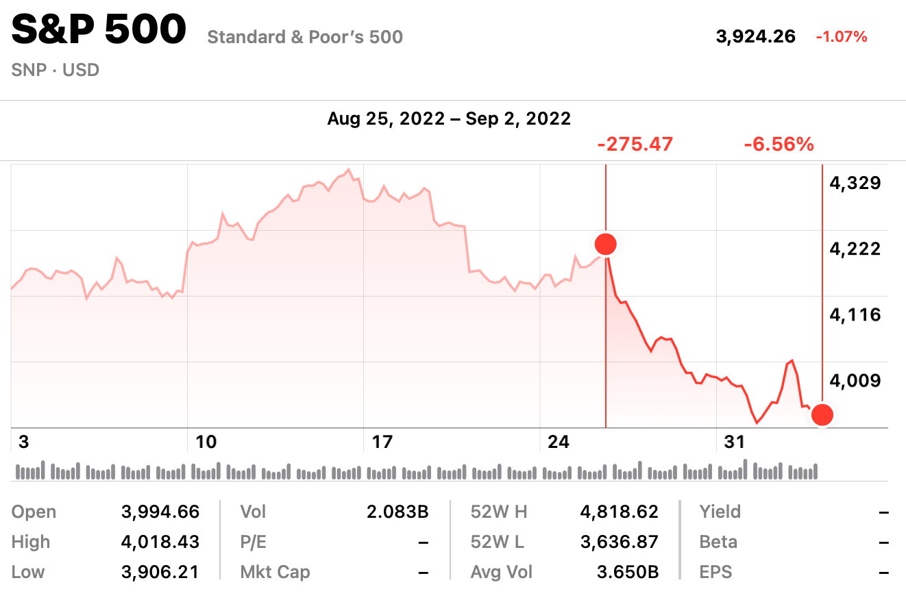 The enthusiasm that had started in mid-August has been sucked completely out. Since Fed Chairman Powell made his comments in Jackson Hole, the market has gone down 6.5% in six trading days. The day of his speech on August 26th, the S&P 500 and Nasdaq had their worst day in two months.