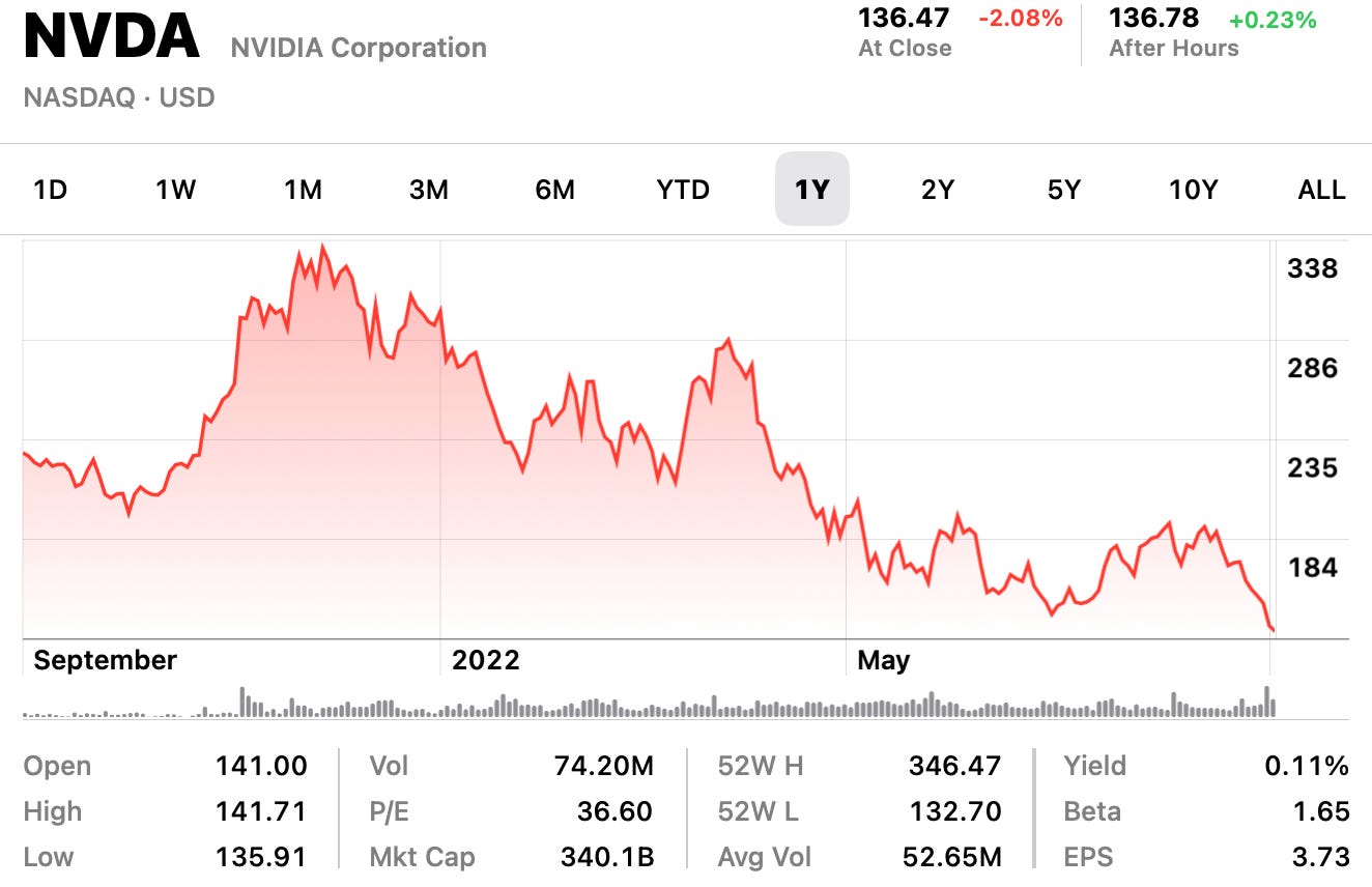 Nvidia NVDA 0.00%↑. Added to my position at $138. It hit a new 52-week low after the US imposed a new license requirement for the company's AI chips to China and Russia. My feeling is this is another short-term related negative story for Nvidia. Very long this name.