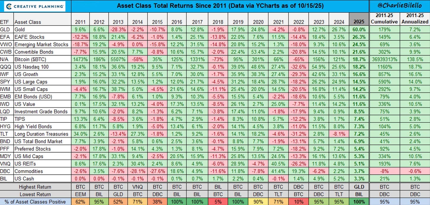 The theme of 2025 is green. Every major assets class is green so far and that hasn’t happened in a year since 2019.