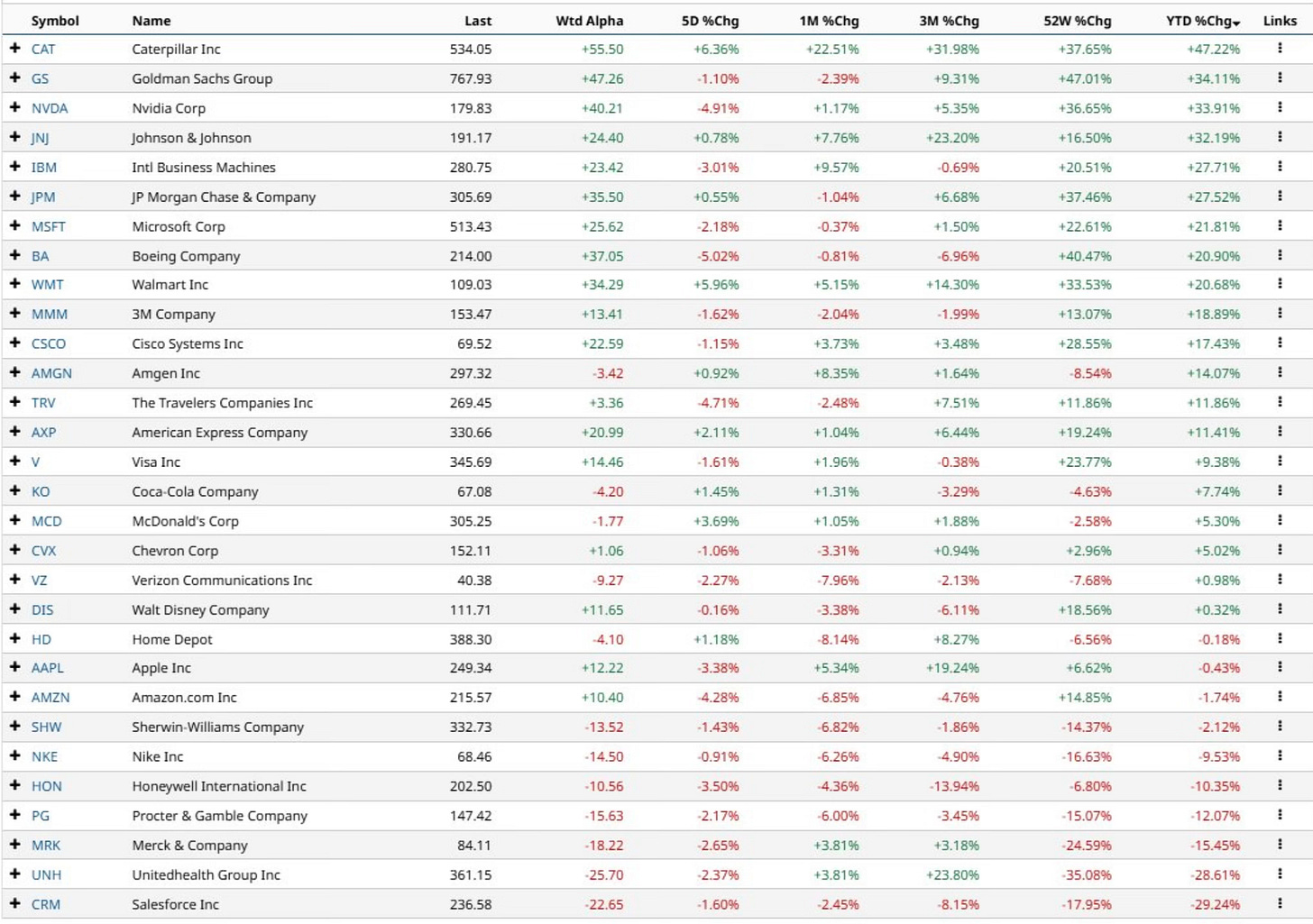Dow Performance YTD