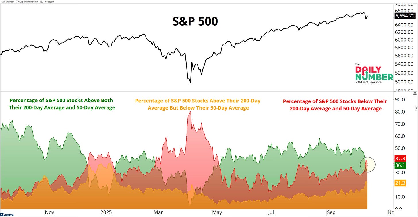 You also have for the first time in five months, downtrends outnumber uptrends. 37.3% of S&P 500 stocks are now in downtrends.