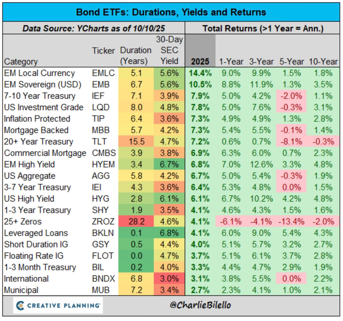 All the bond categories are now also positive YTD.