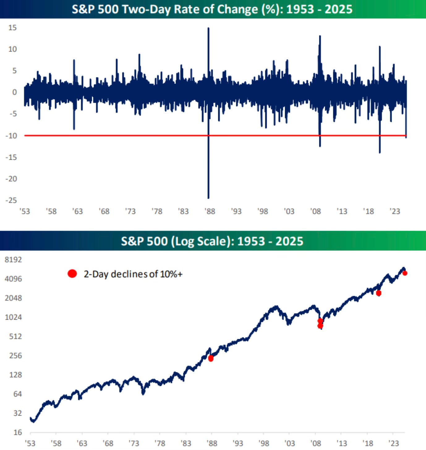 It was actually just the 4th time since 1952, where there has been a 2 day drop of 10%+.