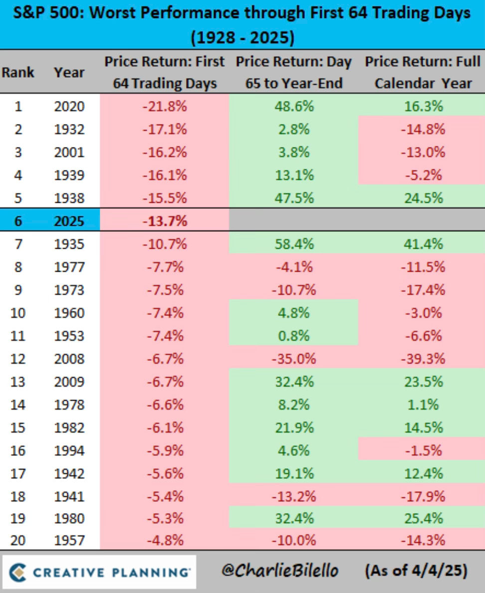 This is the 6th worst start to the year through the first 64 days for the S&P 500.