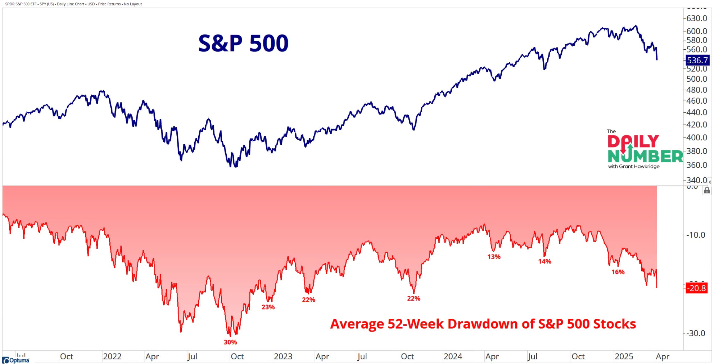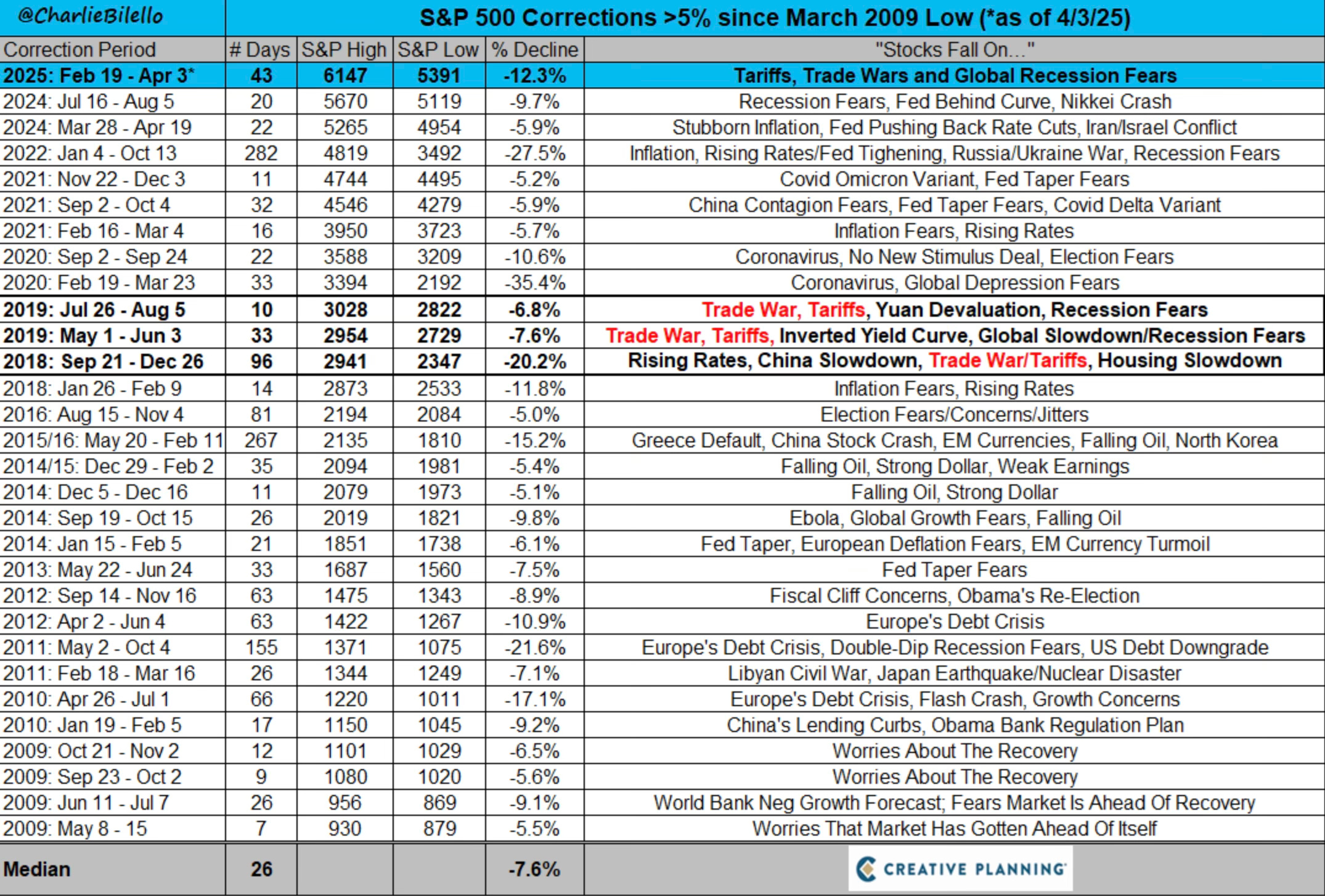 The S&P currently sits down 12.3% from the market peak on February 19th. This is the biggest drawdown since 2022. It’s only the 10th correction of 10% or more since 2009.