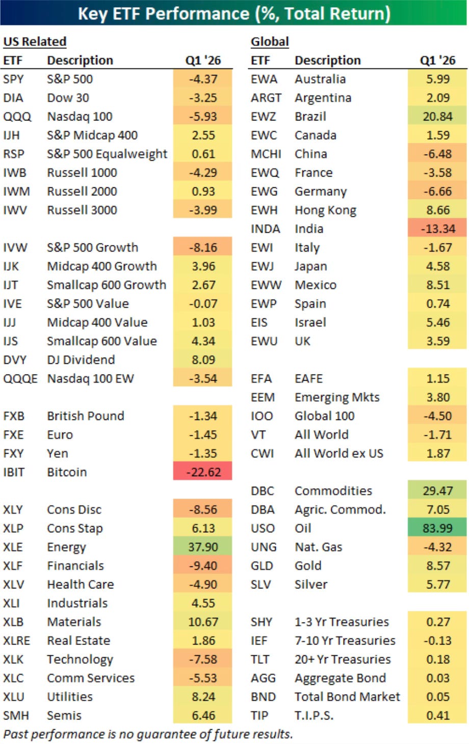 The Q1 story is clear. What happens next is the harder question. Paid subscribers get the full Q2 outlook, a look at what the technicals are saying, and a breakdown of today's jobs report below.