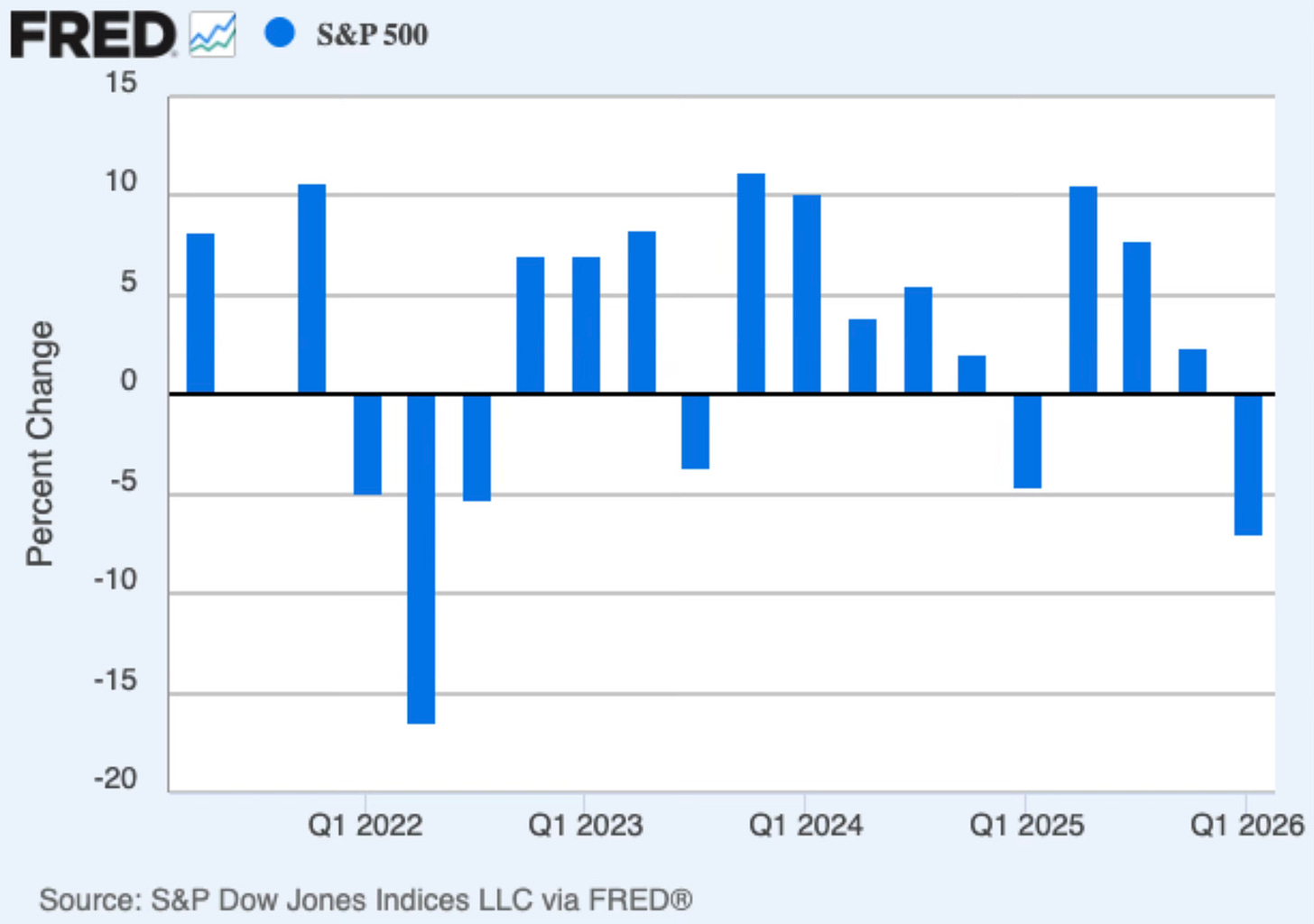 The S&P 500 finished Q1 down 4.6%. That’s the worst quarterly performance since Q3 2022, when Russia’s invasion of Ukraine rattled global markets. Three years of double-digit gains, gone in 90 days.