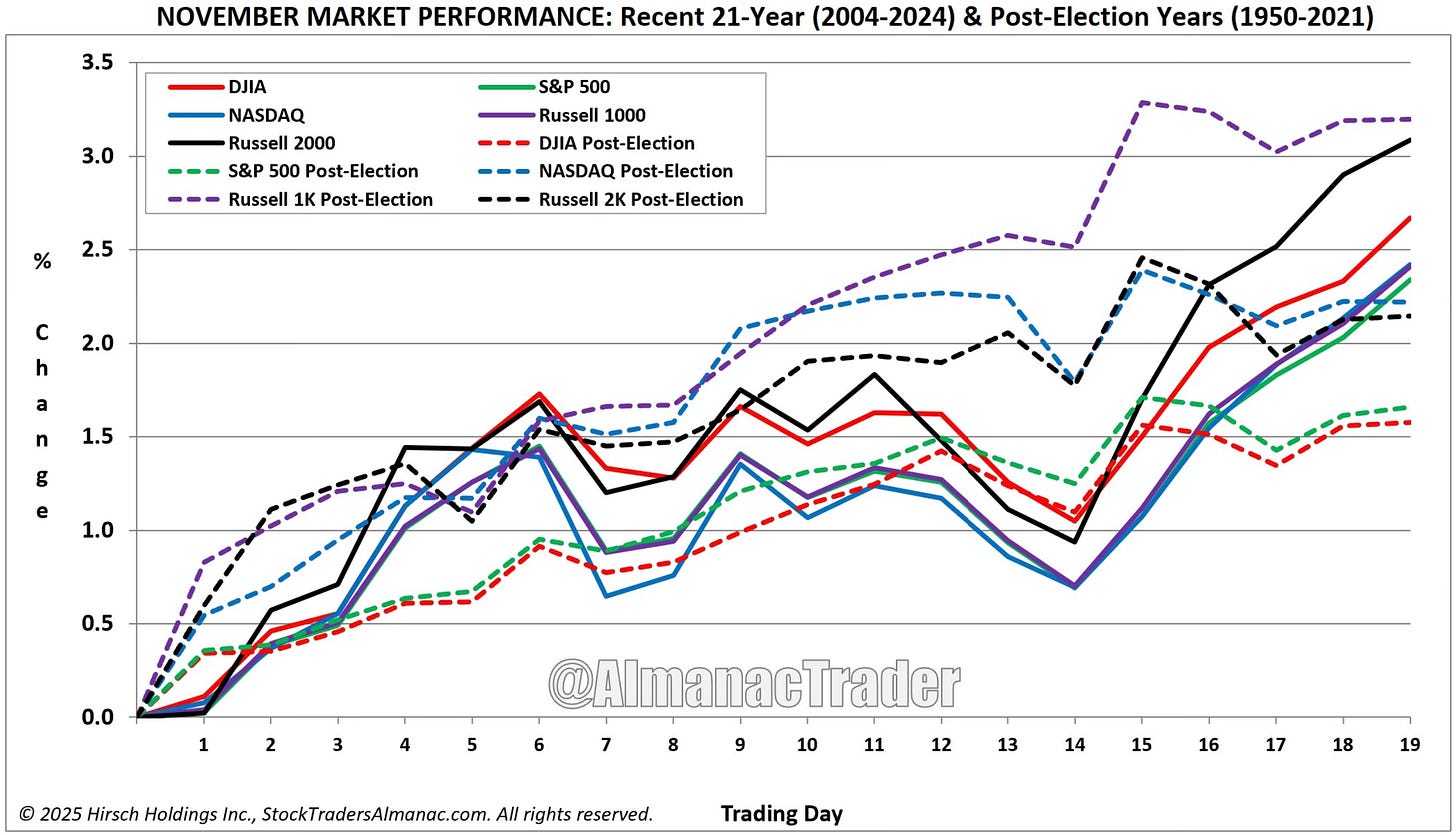 Now the calendar flips to November, the best month of the year for the S&P 500. Historically, it has been positive 67% of the time. Not a bad setup heading into year-end.