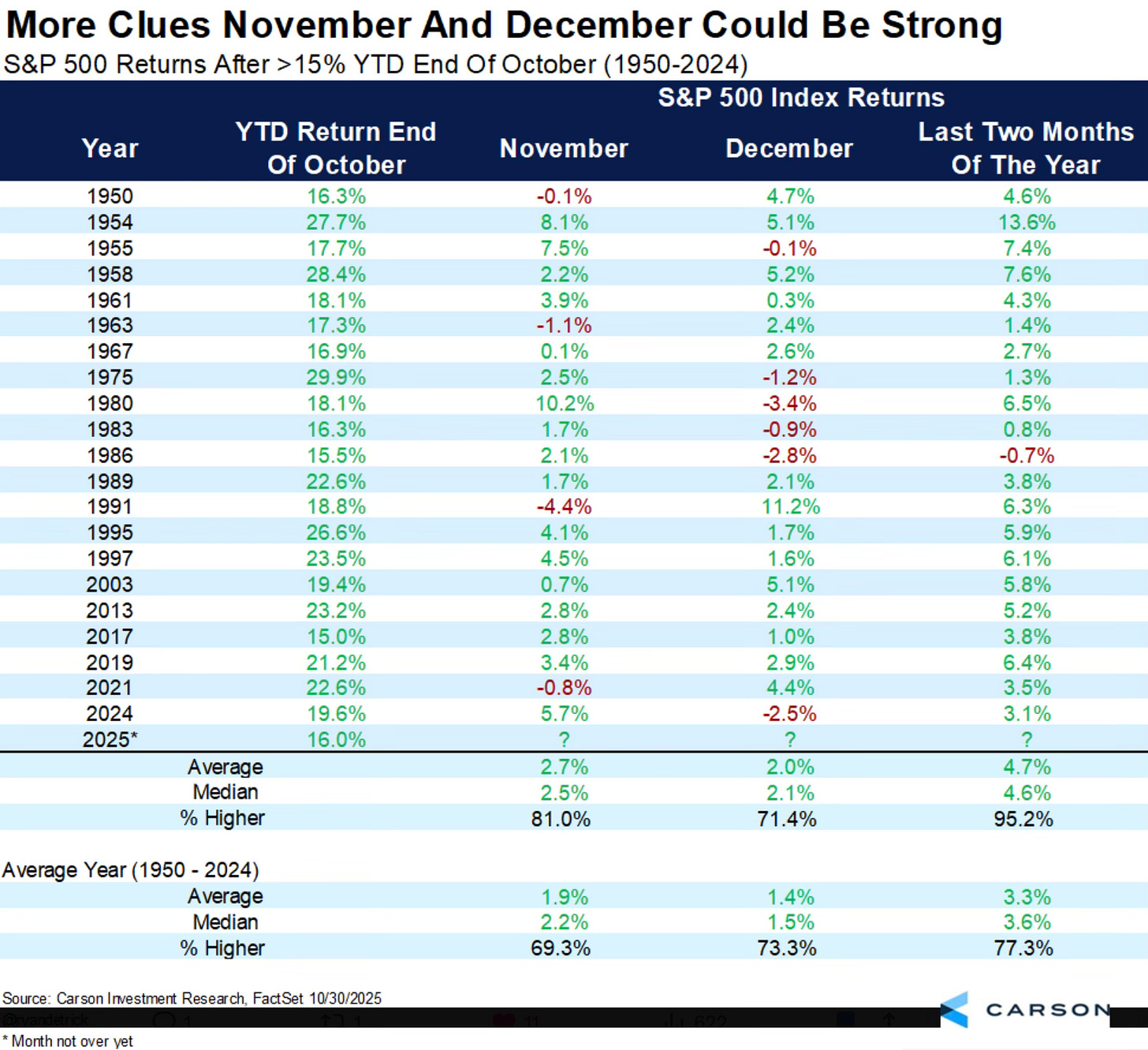 As Ryan Detrick points out, it could be an even better than normal November.