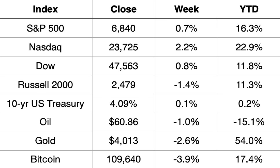 It was a busy week for the stock market. The Fed kicked things off by cutting interest rates early in the week, and then five of the Magnificent Seven reported earnings to close it out. That one-two combo helped push all three major indexes to finish the month in the green.