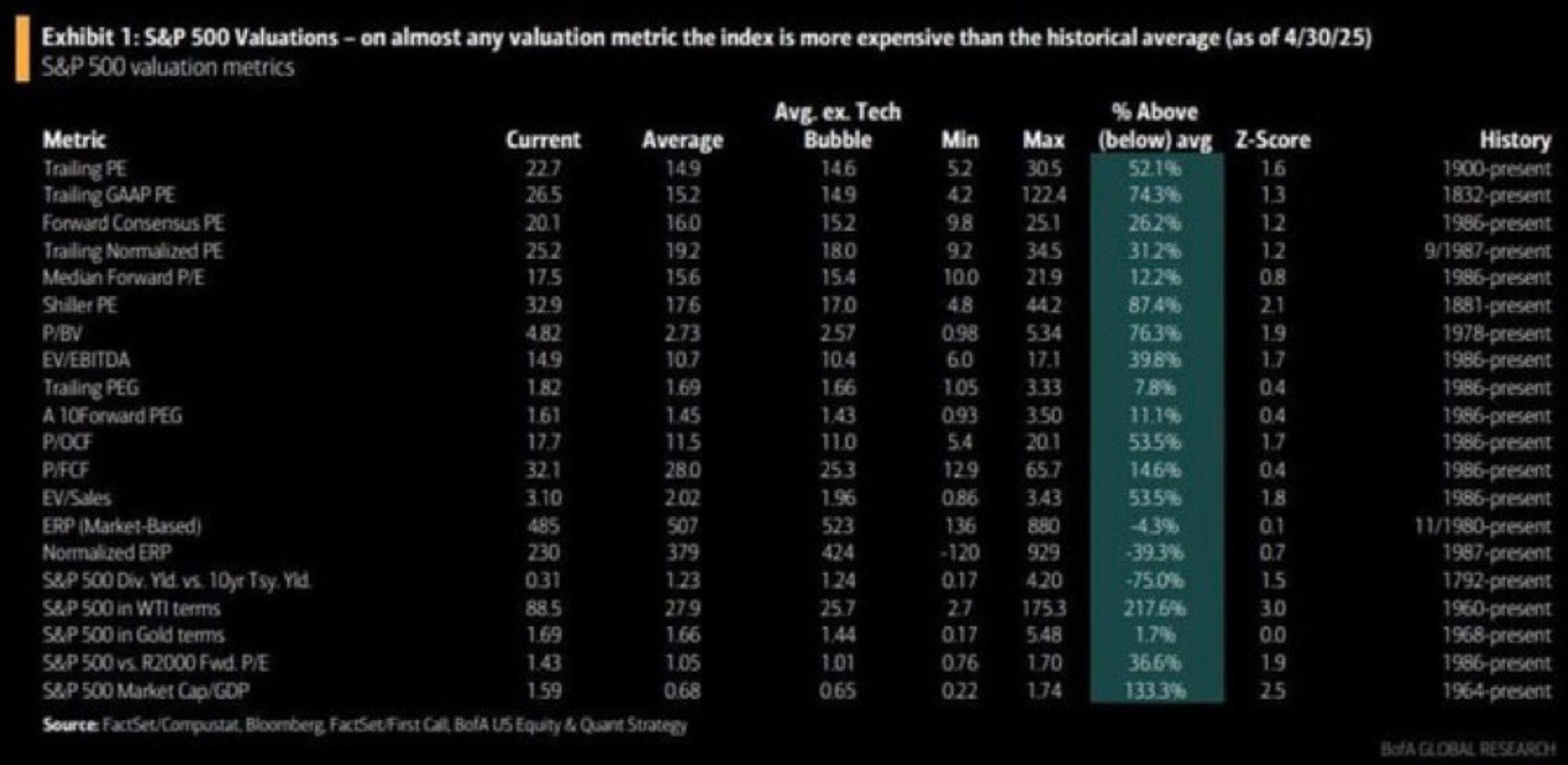According to BofA, the S&P 500 is at historically expensive levels in every metric that they track.