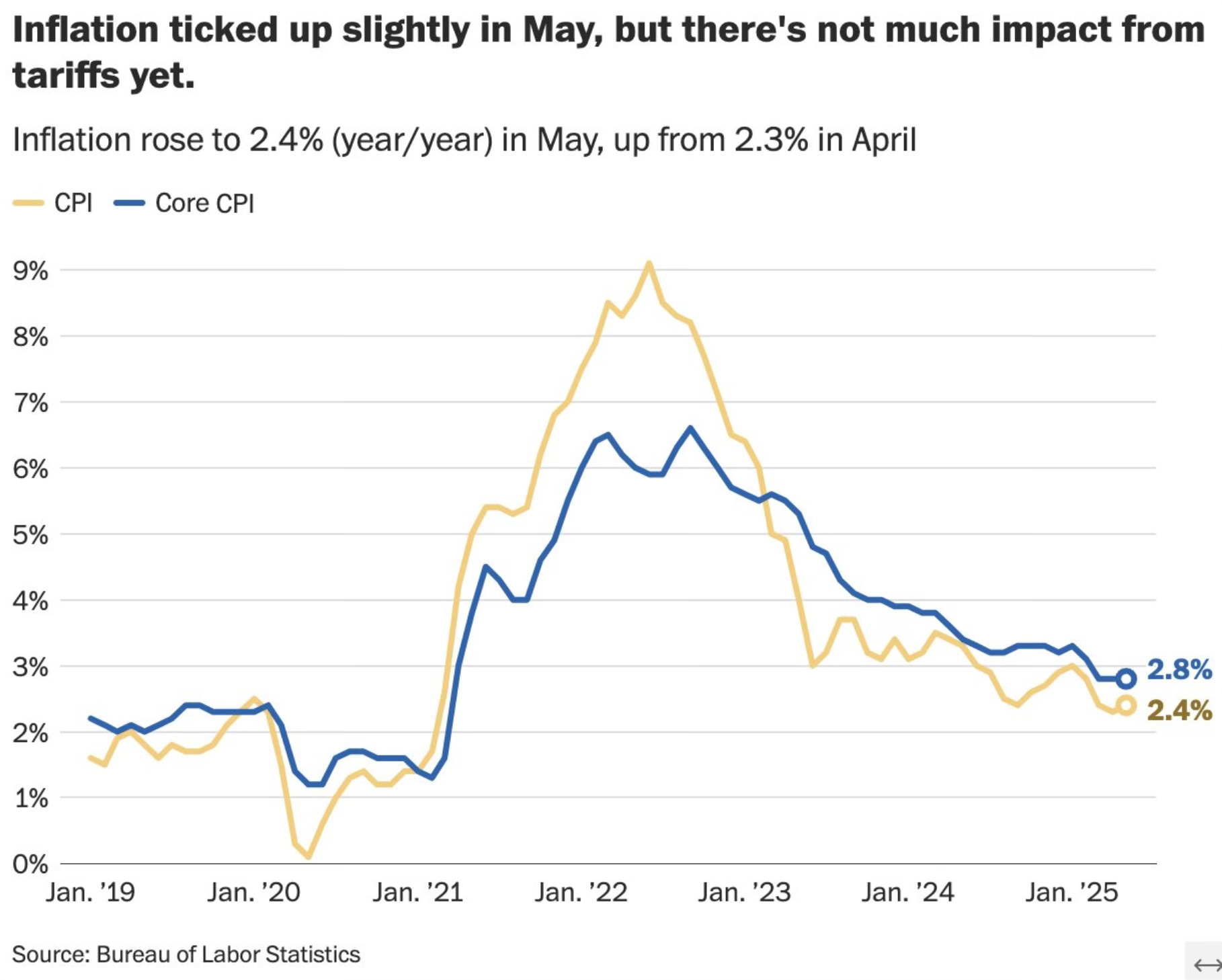 Any fear over the tariffs causing a spike to inflation has yet to be seen.