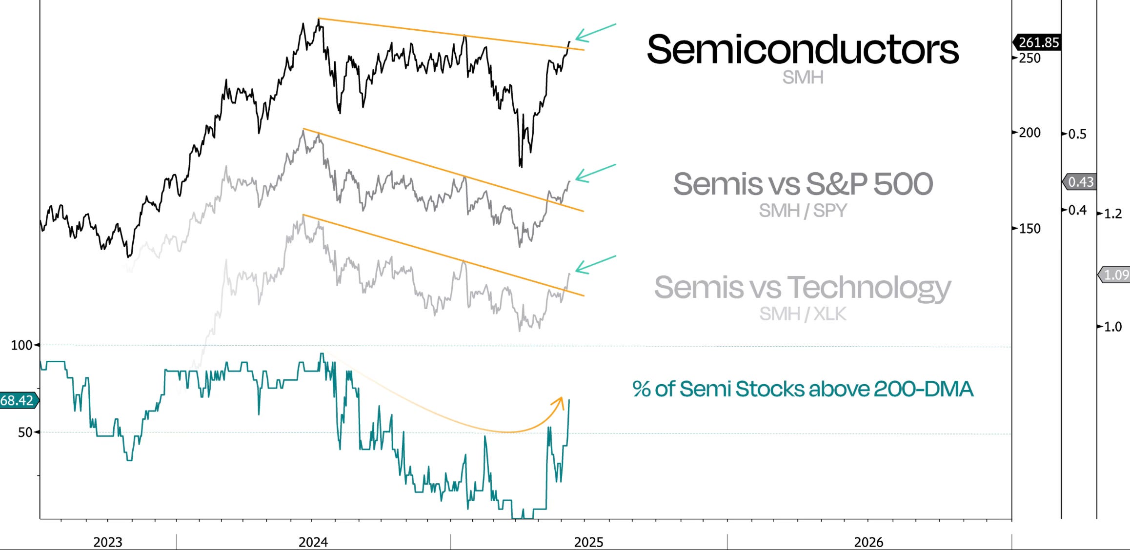 Continue to stay long semis. This has been a bull market engine.