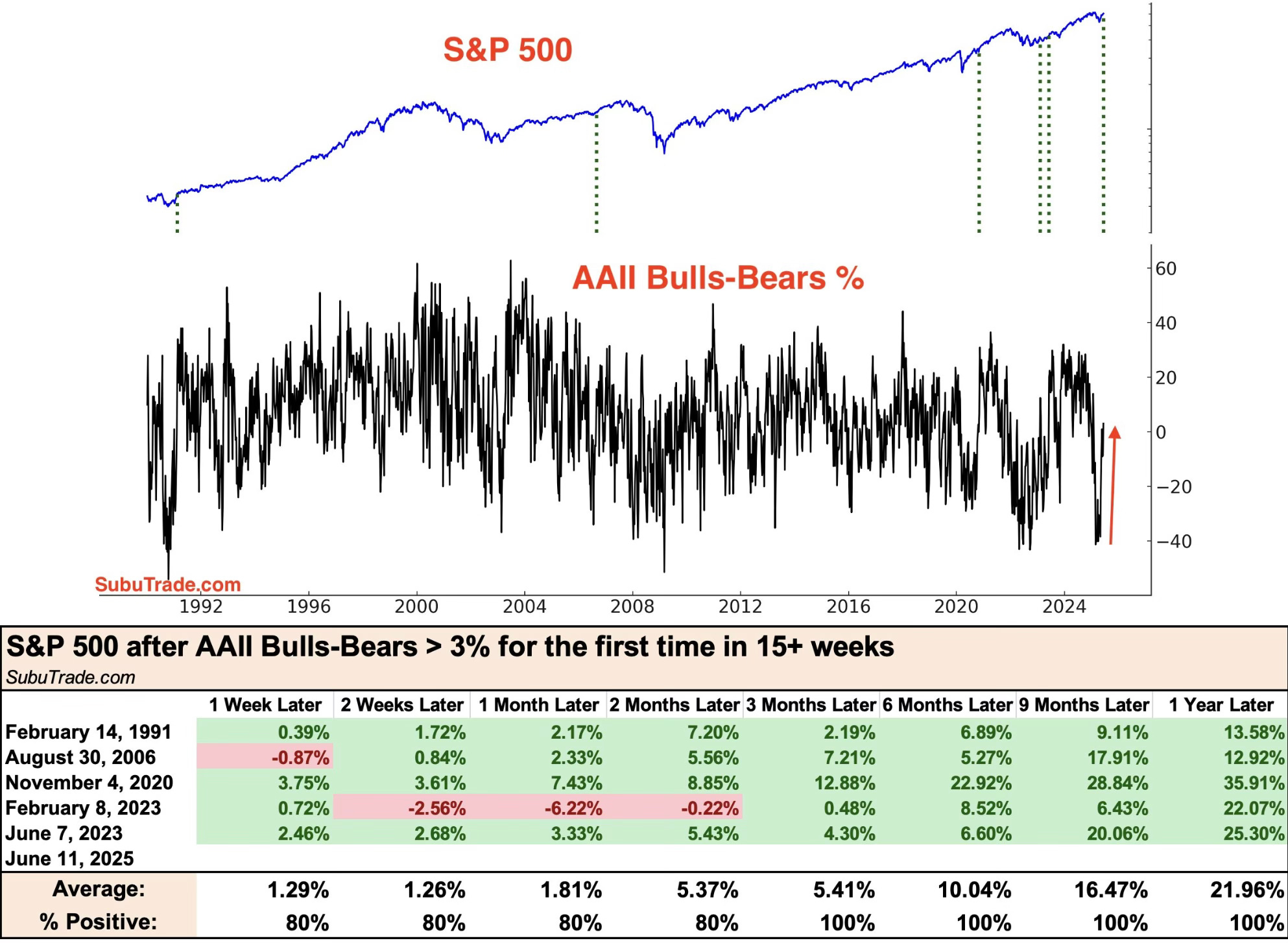 We’re starting to now see sentiment recover: The AAII Bulls-Bears just topped 3%+ for the first time in 15 weeks. Look how bullish this is over the next 3 to 12 months.