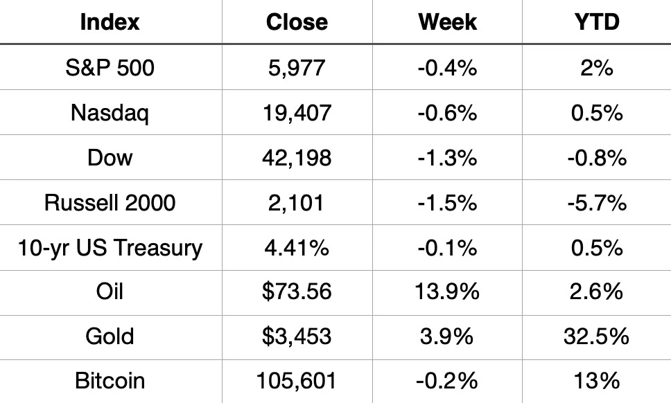 The S&P 500 fell back below 6,000 as the escalation between Israel and Iran weighed on the stock market to end the week.