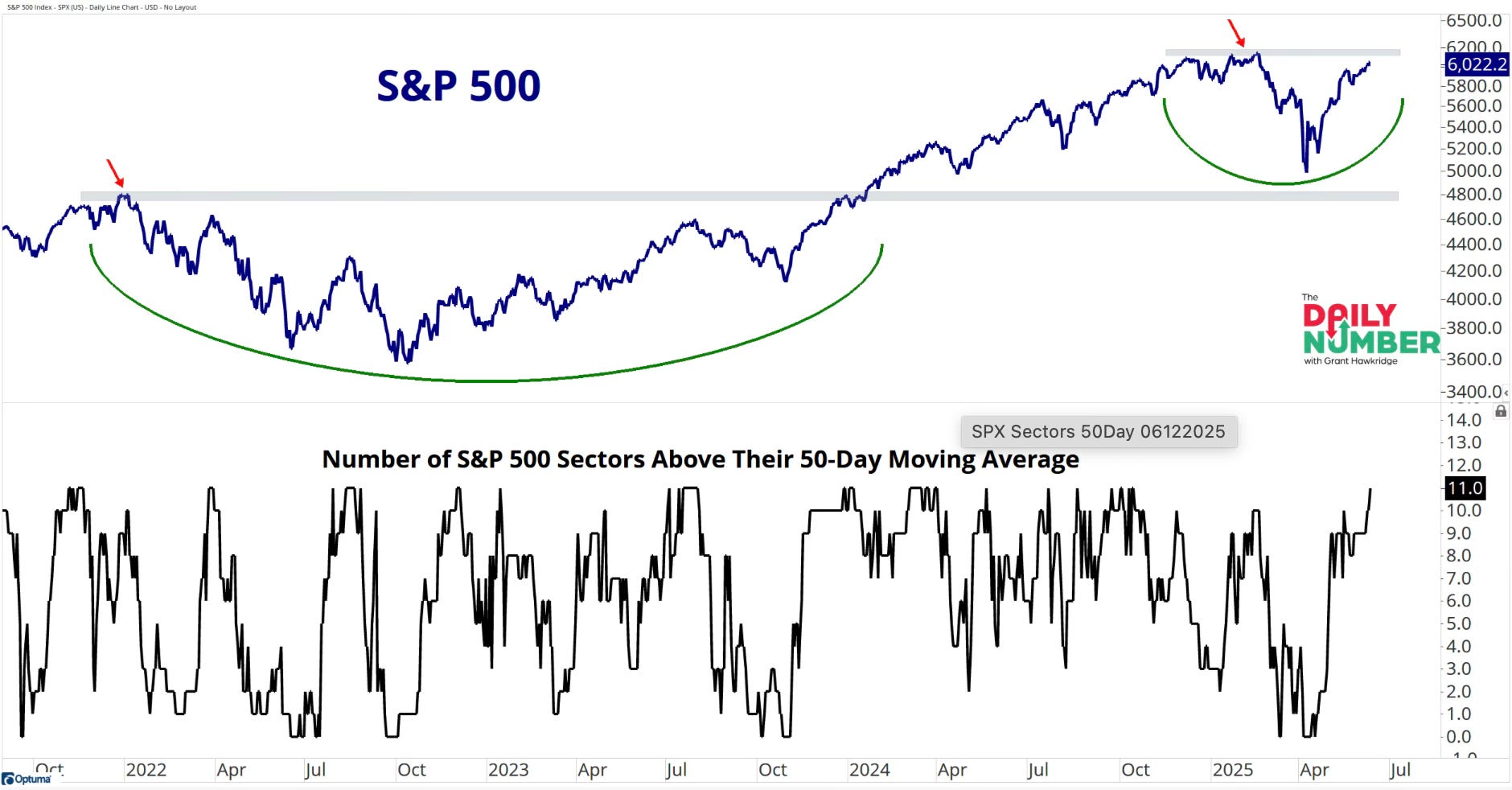 All 11 sectors are now trading above their 50-day moving average. That hasn’t occurred since October 2024.