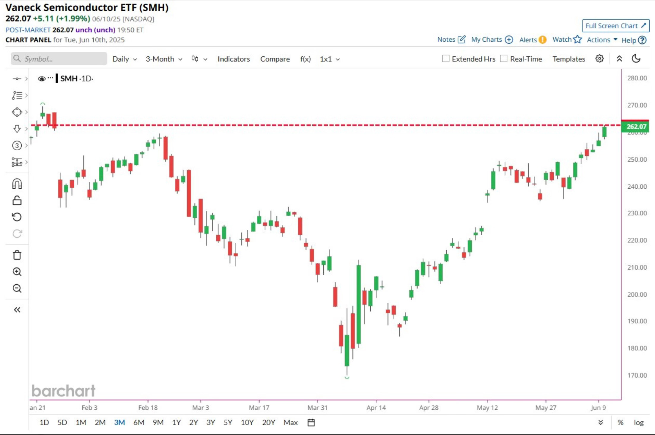 The SMH is now at its highest price since January.