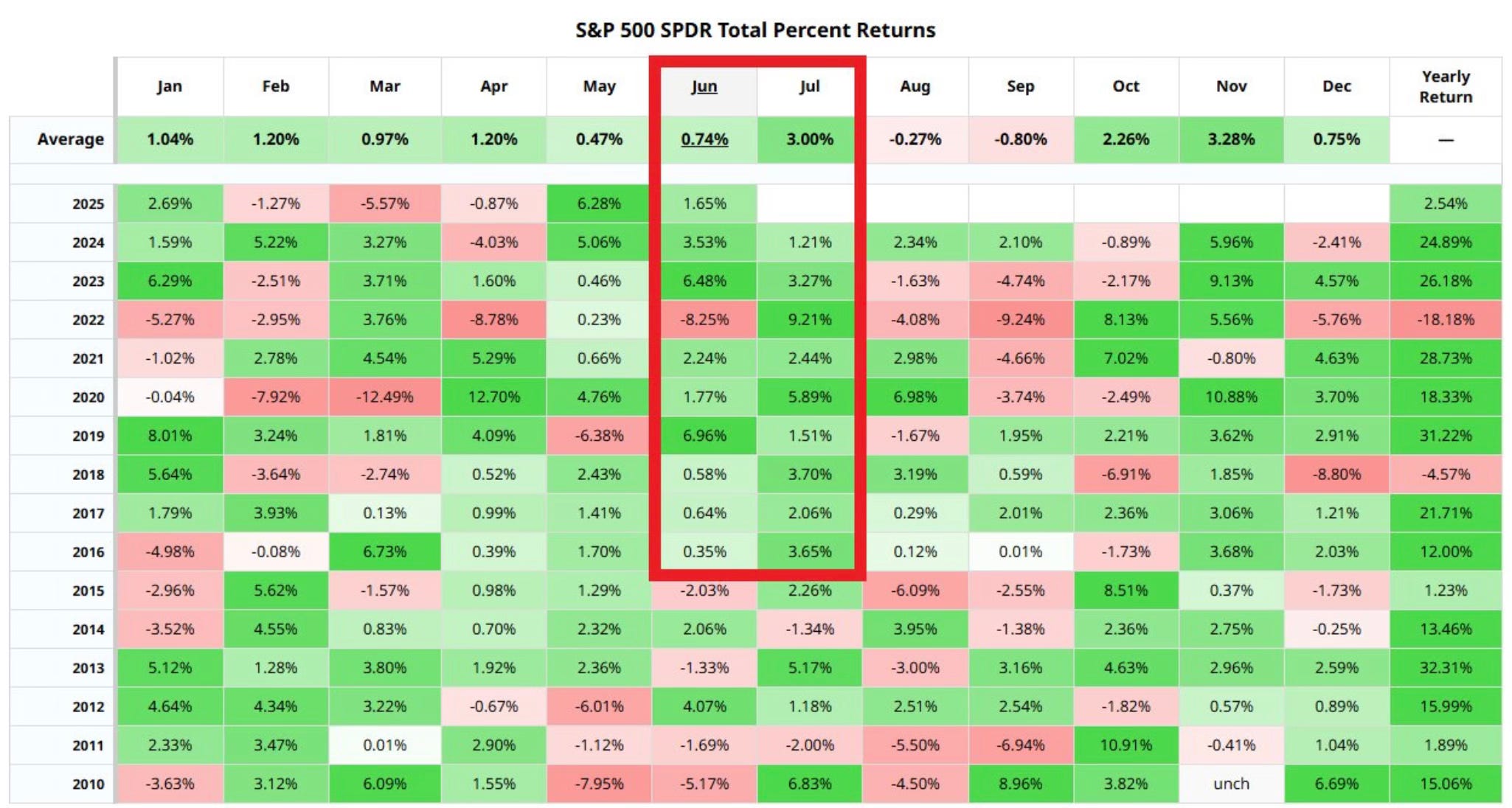 The S&P 500 has only had 1 losing month during the June and July period going back to 2016.