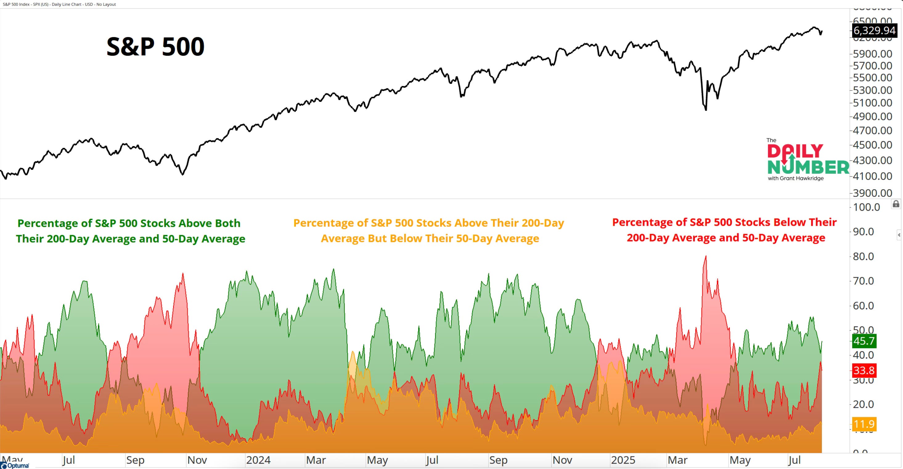 Almost 46% of the S&P 500 stocks are above both their 50-day and 200-day.