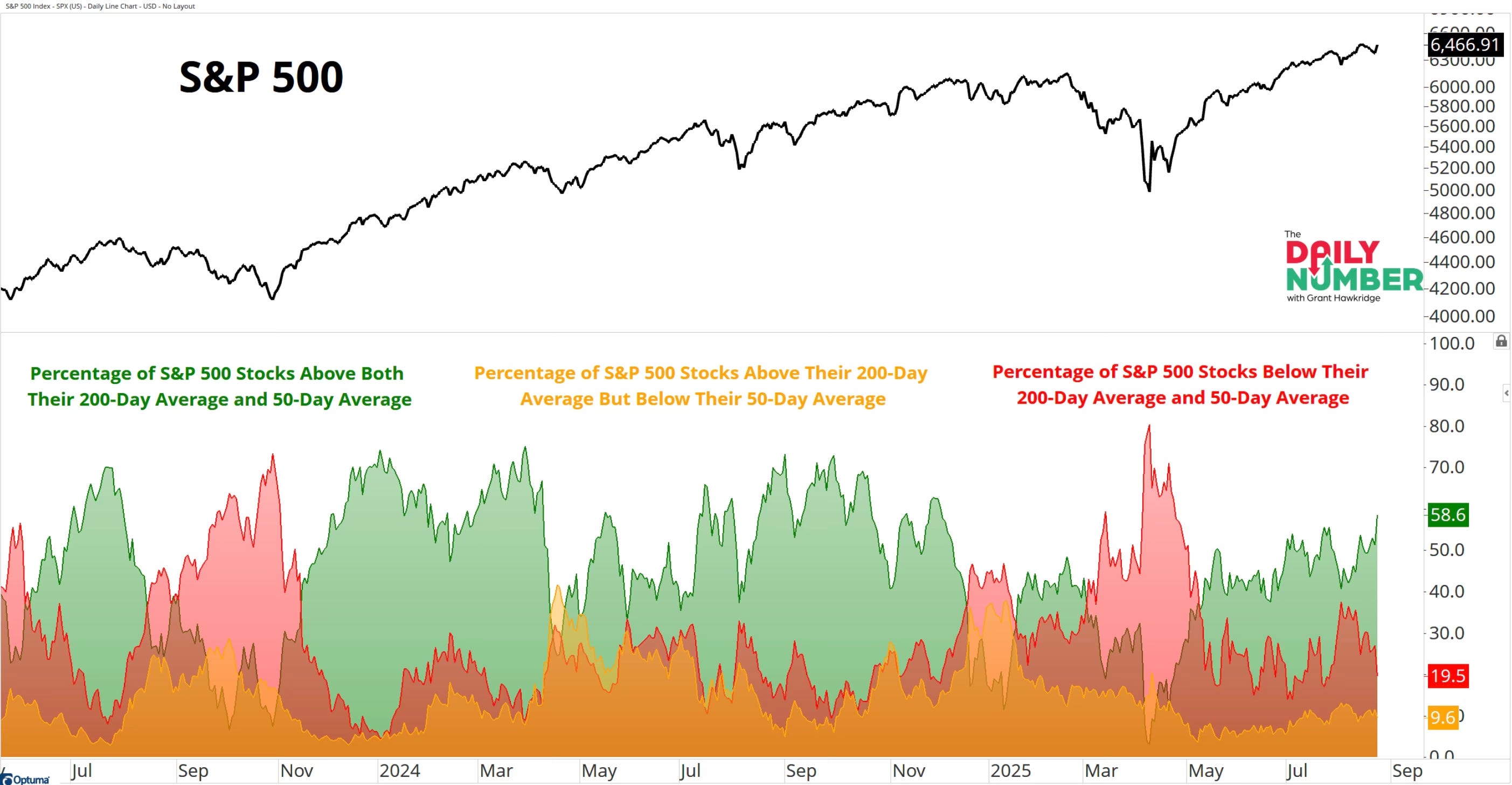 Almost 60% of S&P 500 stocks are above both their 50-day and 200-day.