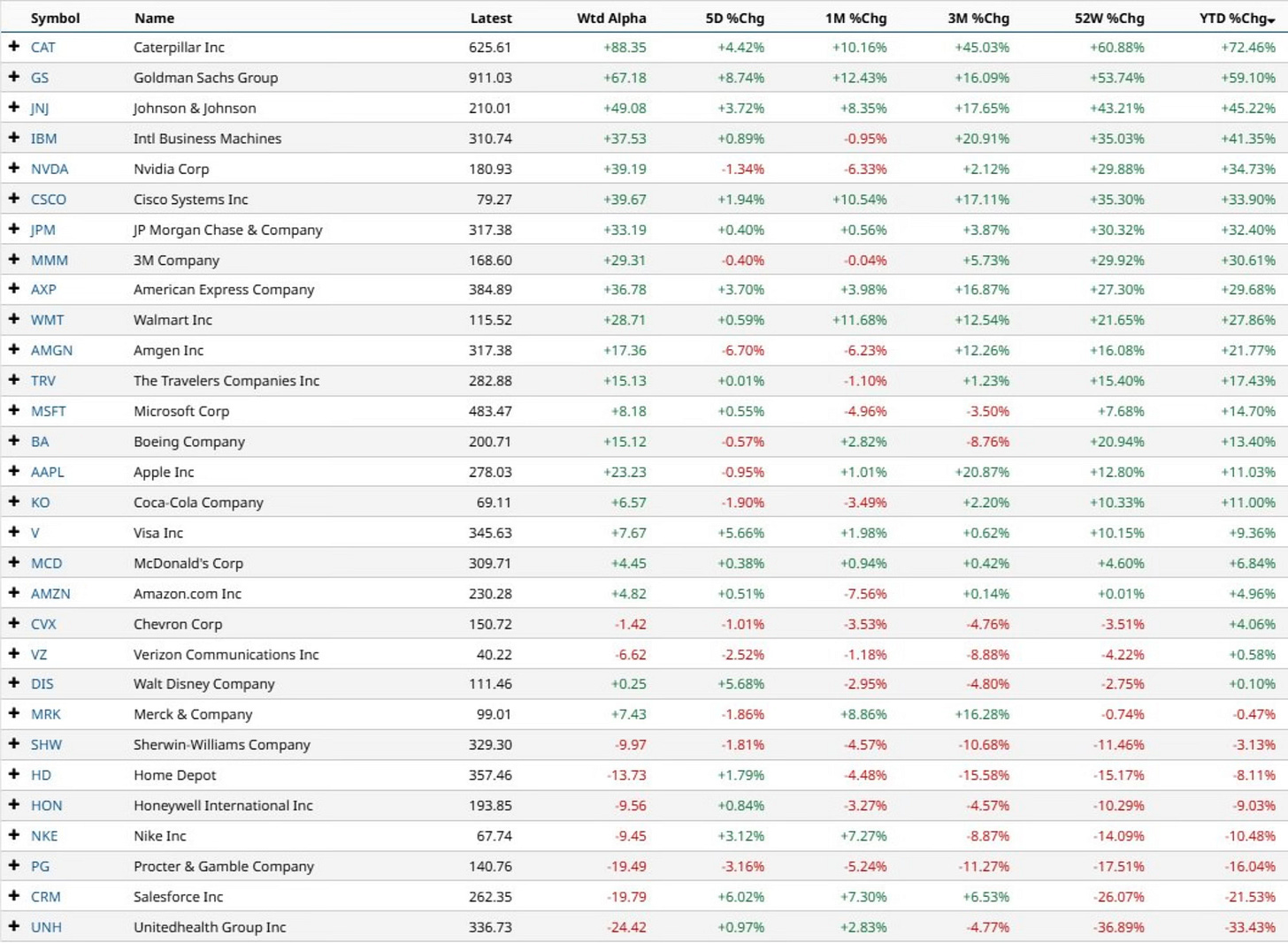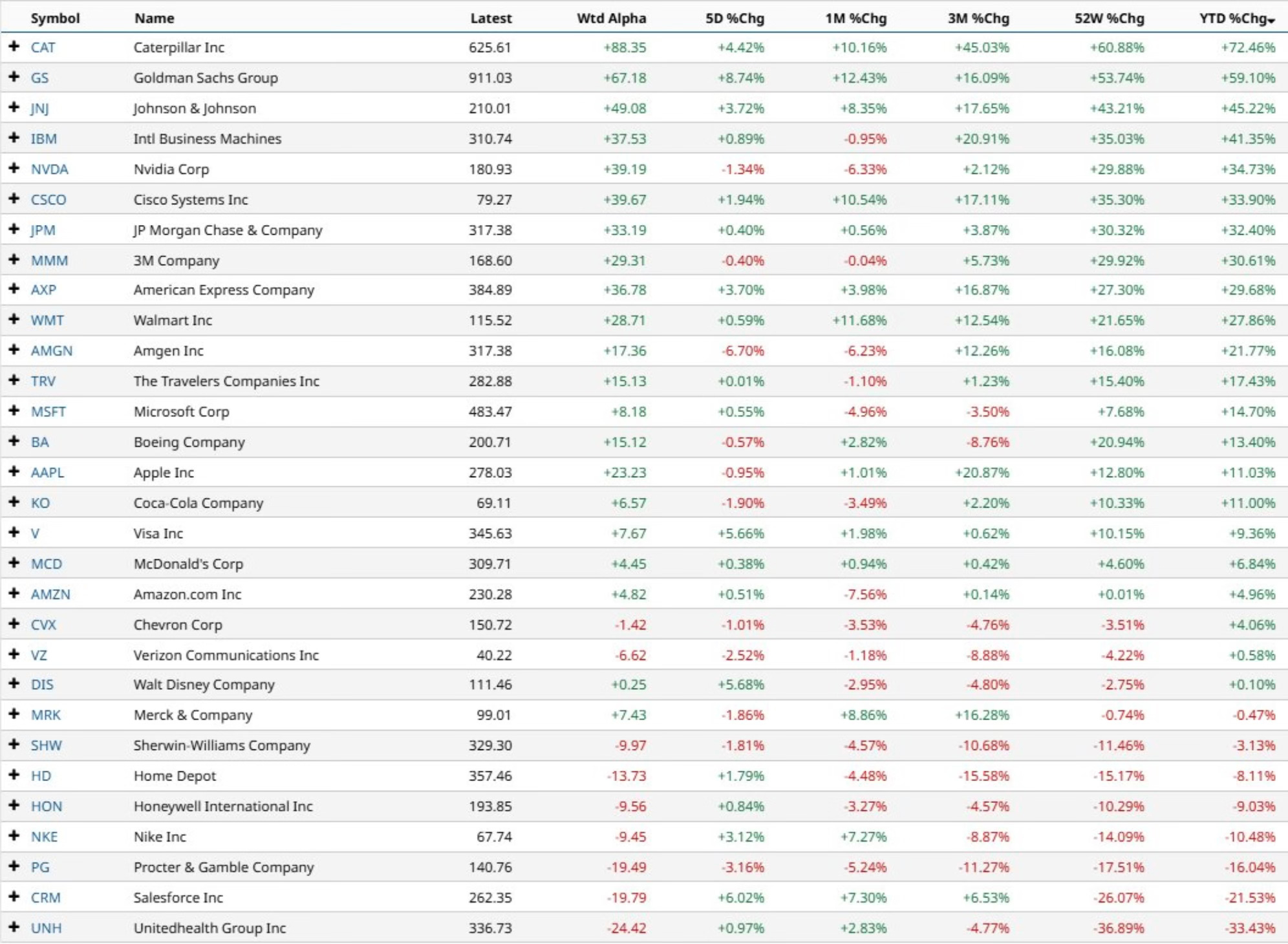 Caterpillar (CAT) still leads all the Dow components on the year with Unitedhealth (UNH) being the biggest laggard.