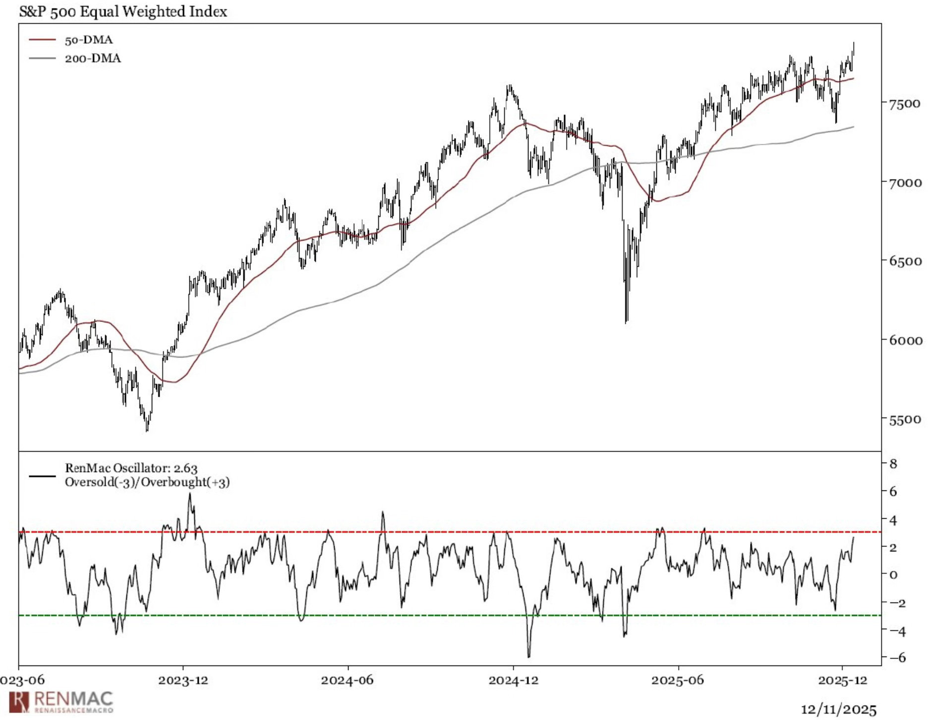 The “breadth bear” case is impaired. S&P 500 Equal Weight hitting fresh highs confirms this isn’t just a mega-cap story. When the average stock participates, the floor rises.